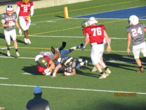 After Antwan Brown, who played for Warren JFK, broke off a 28-yard run, the Mahoning County defense would get the ball back for its offense after Justin Musch of Western Reserve recovered a fumble. The quarter would end with the score still 7-0. The defense would rule the 2nd quarter, with the biggest play coming when Isiah Munno fumbled the ball, and making the recovery for Mahoning County was Trey Mitchell, who scooped the ball up and did not stop sprinting until he found himself in the end zone, making this a 7-7 game after the point-after kick from Pugh. The Mahoning County would make one more big play when Brayden Pirone from Poland sacked Mineral Ridge’s Mark Buch.