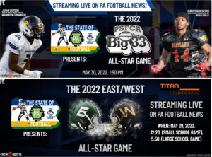 PAFootballnews.com is PROUD to announce the Livestream of the PSFCA Big 33 and Titan Threadz East/West All-Star Games