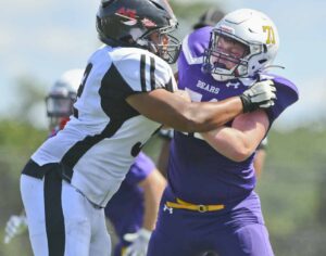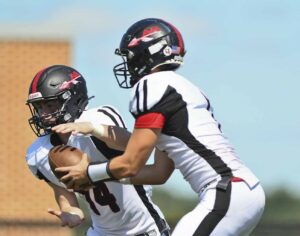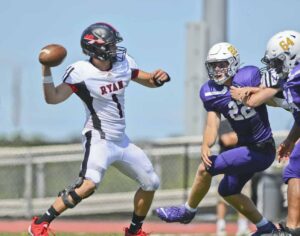 To open the second quarter McConnell then fired one past the defense for a ten-yard touchdown to wide receiver No. 10 Gavin McConnell. A complete two-point conversion to wide receiver No. 17 Freddy Schilling would put Ryan up 10-0. After another Change of possession where UM fumbled, they would find themselves in the Red Zone after a thirty-six-yard completion from Byron Hopkins to wide receiver No. 2 Ryan Olexa. UM’s running back No. 4 Hassan Johnson bullied his way in from two yards out to put the Bears on the board. The point after was good and the Ryan lead was cut to 10-7.
