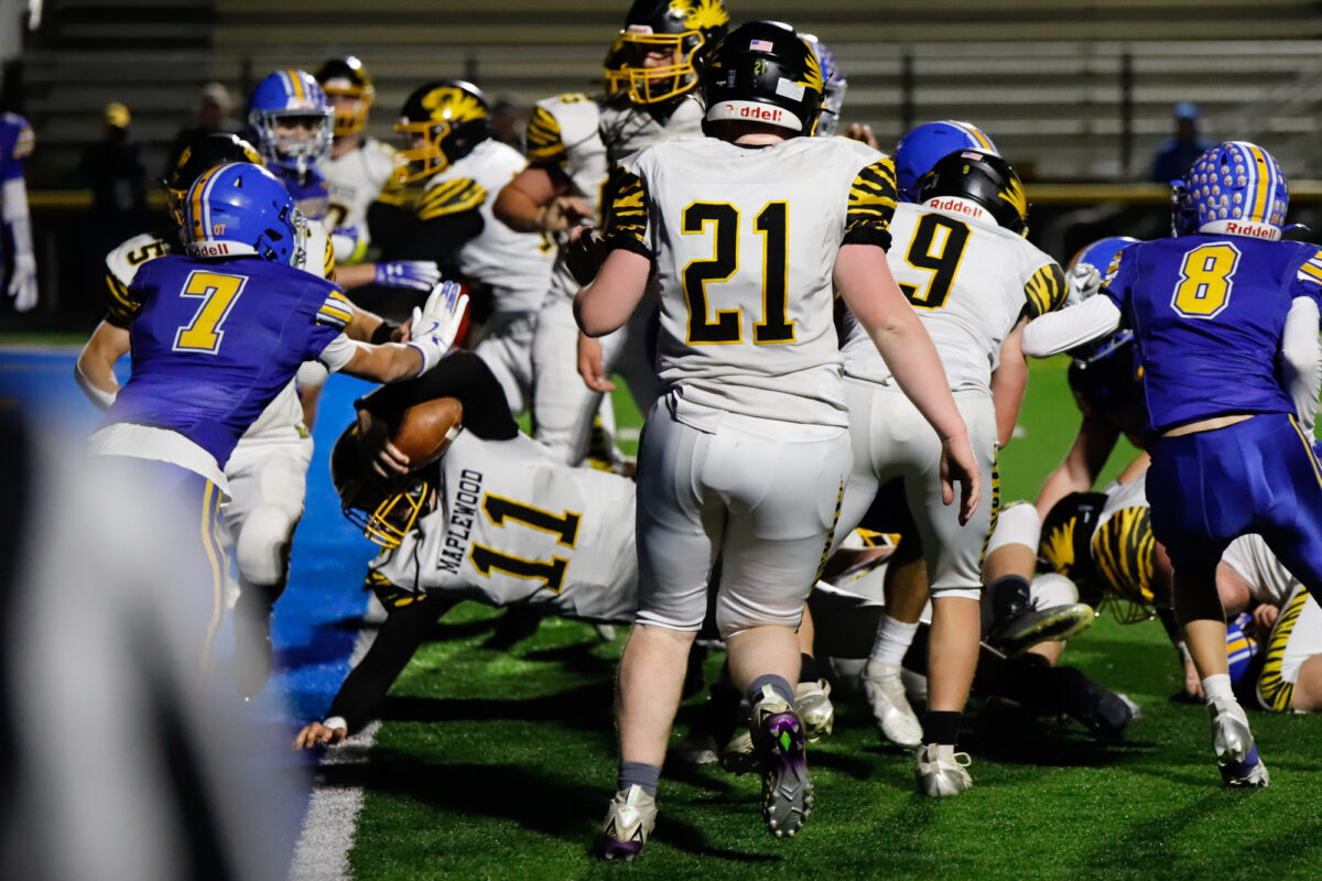 Andrew Proper with a 21 yard TD run. Pass is incomplete. Maplewood trails Greenville, 50-30 with 2:21 left in the game. @PaFootballNews @BobGreenburg @professorbriggs pic.twitter.com/SpBkR6C2ez