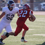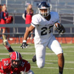 The Oilers would then drive 55 yards into Juniata territory on the strength of a Christy 48 yard run. But now it was the Oilers turn to start committing penalties. An illegal procedure and a holding penalty pushed them back. Defensive end Austin Derr then recovered the second Oil City fumble of the half. The Indians Condo was then sacked again, but on third and 21 he scrambled for 17. Juniata got the first down when Oil City jumped offsides influenced by Condo’s hard count. But the drive stalled again when Condo was sacked. Juniata punted and a blindside block by Oil City put them back on their own 21. On the first play of the drive Stahl hit Dakota Cole with a quick pass. Stahlman was hit immediately and didn’t appear to have made the catch. However the officials never blew their whistles and junior linebacker Zachary Harr scooped up the ball and raced into the end zone for the score. Juniata was flagged for excessive celebration. But Oil City was called for clipping on the kickoff and then holding, pushing them back inside their own 15 as the fourth quarter got under way. The Oilers loss fumble number four of the half and the Indians had first and goal. Junior running back Yaneil Ortiz would score the first of his two touchdowns to cut the lead to 26-21. Ben Wagner then bounced the kickoff over the Oilers front line players, as everyone chased after the ball Oil City was not able to recover. The Oilers fifth loss fumble of the half gave the Indians the ball at the 13. Ortiz would score again to give the Indians their first lead. The two point conversion failed and with 8:58 left in the game Juniata was up 27-26. Wagner’s next kickoff i