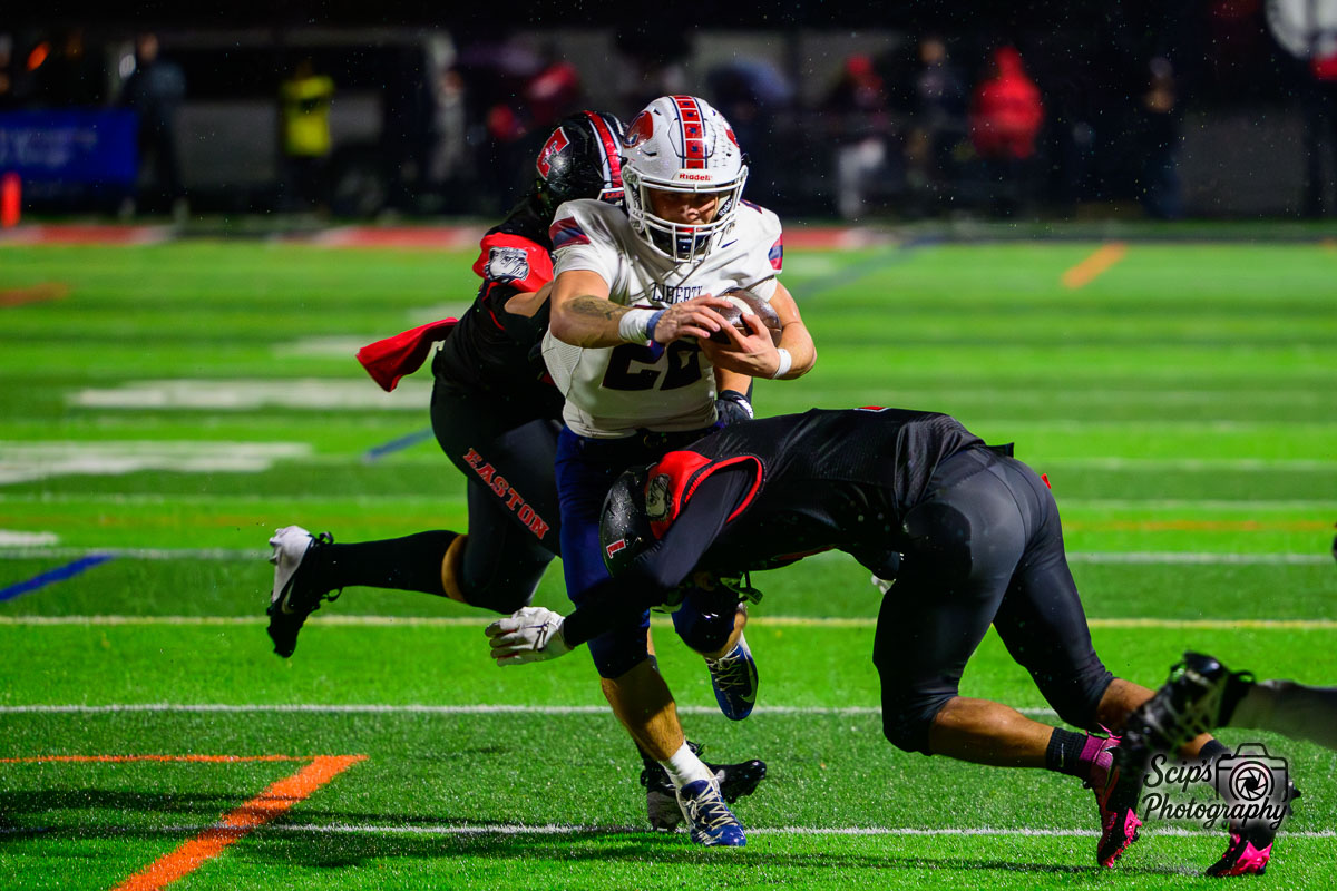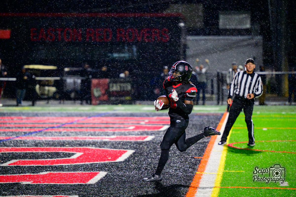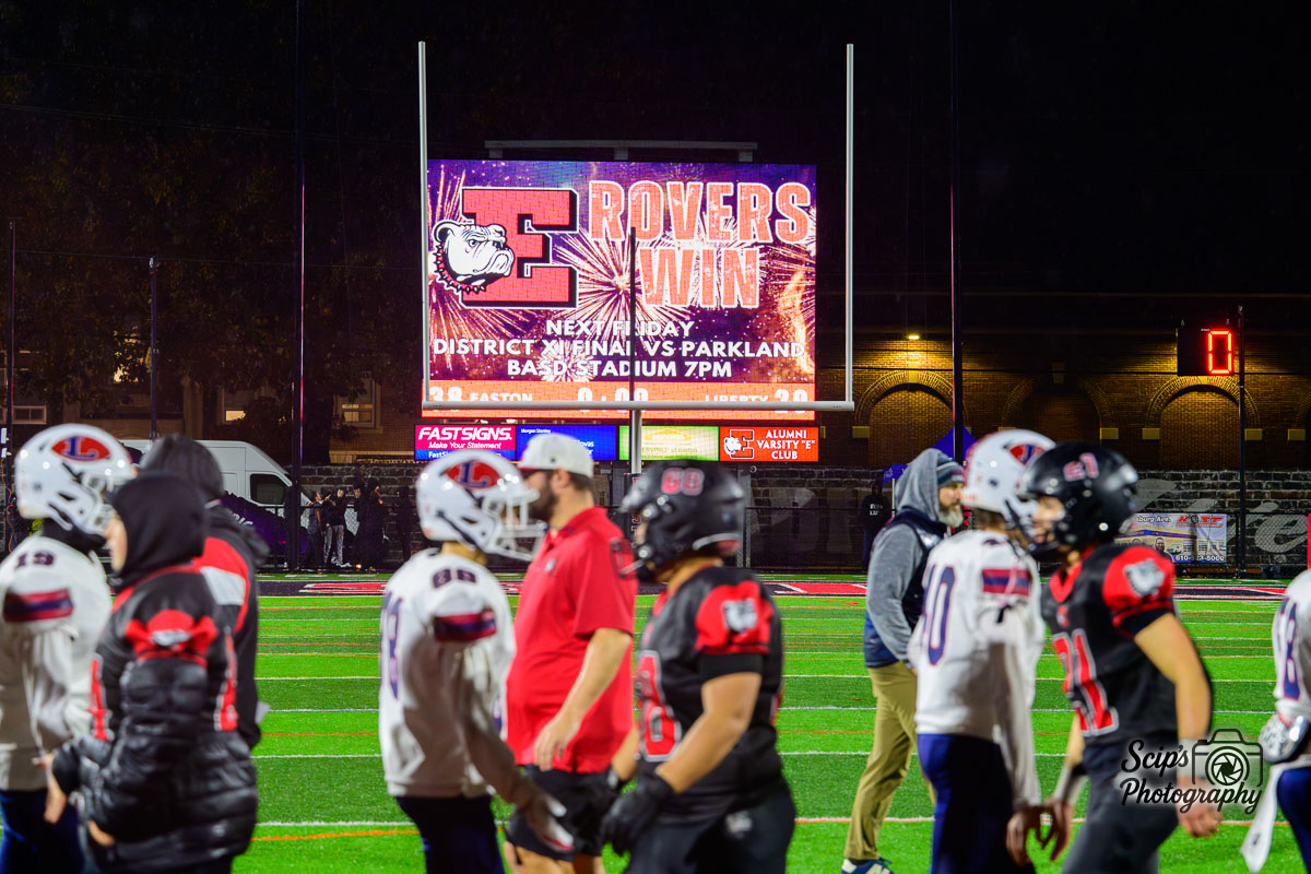 It was a wet one at Cottingham Stadium for the District XI Semi-Final Bethlehem Liberty vs Easton . Easton beat Bethlehem Liberty at home 38-20, the 2nd win this year against a tough Hurricane team. The Rovers improve to 12-0 on the season and will face a 12-0 Parkland Team at BASD Friday Novemeber 14th at 7pm for the District XI Championship.