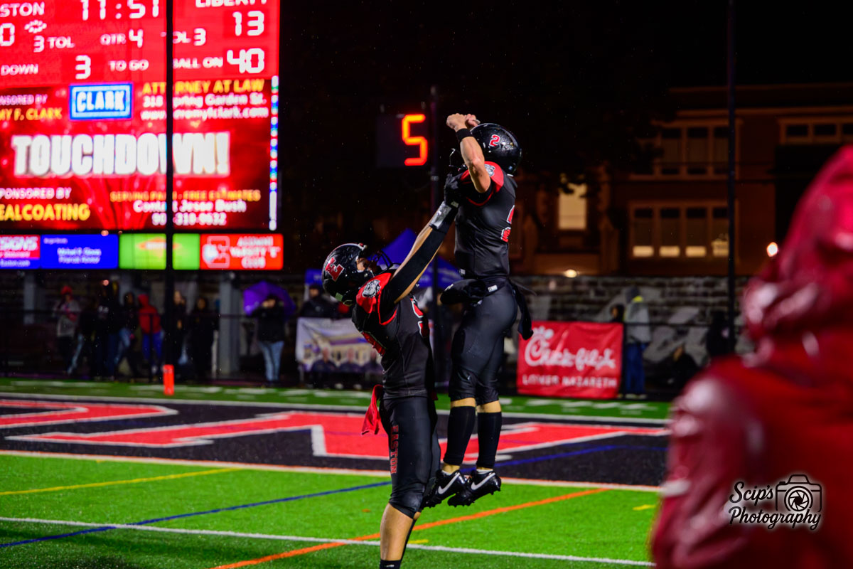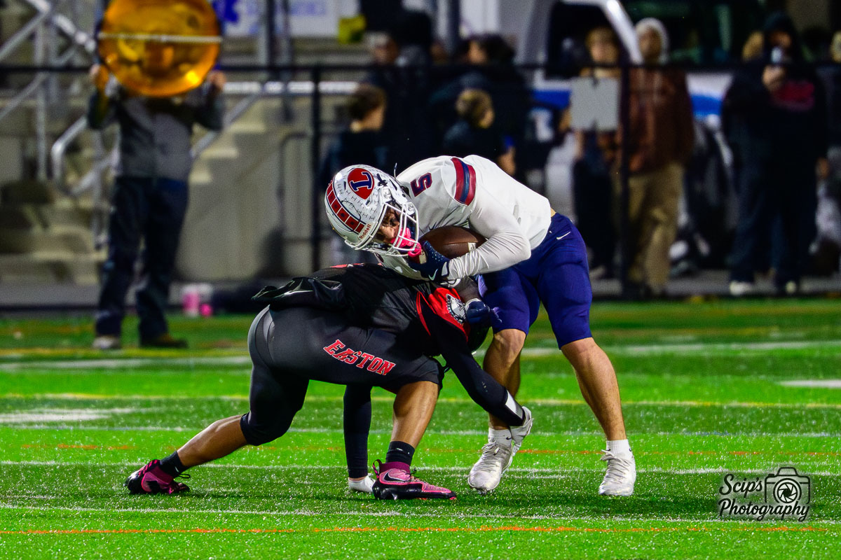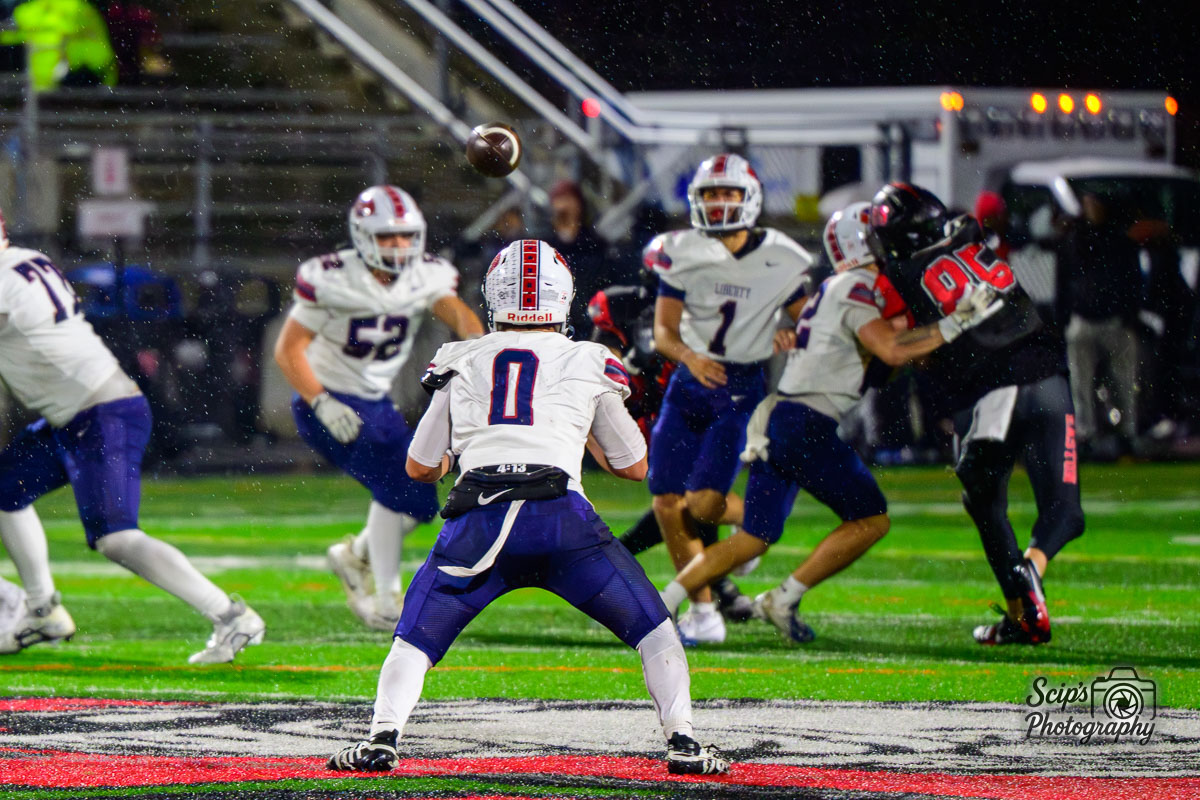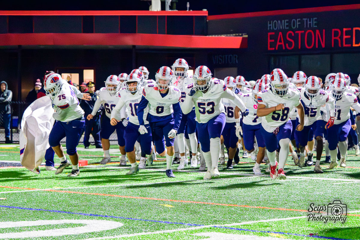 It was a wet one at Cottingham Stadium for the District XI Semi-Final Bethlehem Liberty vs Easton . Easton beat Bethlehem Liberty at home 38-20, the 2nd win this year against a tough Hurricane team. The Rovers improve to 12-0 on the season and will face a 12-0 Parkland Team at BASD Friday Novemeber 14th at 7pm for the District XI Championship.