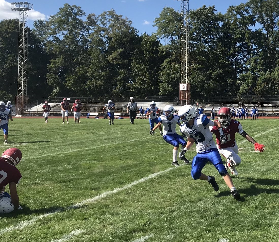The last time Pottsville in Minersville met on the gridiron 1933. Looking at today’s outcome I’m guessing Minersville would like to be just as many years until they meet again. Because of Covid 19, two teams who are drastically different in size had to meet. Neighbors and friends, players on both teams we’re forced to play an improbable game. However, it wasn’t all bad for Minersville even though they were outside and out manned.