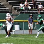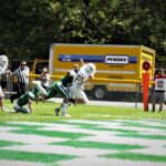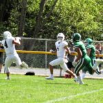 It was a beautiful Saturday afternoon for some high school football action. Pen Argyl came into the game hoping to have improved from their opening week loss to Wilson Area 47 to 14. Many fans in the stands and around the area thought the same, even the fan polls showed just a small advantage to Catasauqua. Unfortunately, that wasn’t the case on this day as the Rough Riders controlled basically all aspects of the game. Catasauqua won the coin toss and elected to defer to the second half, and the Green Knights would receive the opening kickoff, and go to work. The Rough Riders kicker had other plans as the kickoff went deep into the endzone for a touchback, his first of a few. The Green Knights would start 1st and 10 from the 25. On the first play of the game, Green Knights QB Brad Rissmiller connects with Zach Rudy for a 1st down. A few plays later, Pen Argyl would fumble, and lose 14 yards on the play, setting up a punting situation. Catasauqua would waste little time before putting one up in the air for a 50 yards touchdown reception by Jacob Scheirer from the Rough Riders QB Christian Fye. On the Green Knights second possession, they would fumble once again, this time turning the ball over the Catasauqua. 1 minute later, Catty would score again, this time by Hunter Reitz for 27 yards and the score to put the Rough Riders on top, 14 to 0 with 6:12 to play in the first quarter. The Green Knights would get the ball and like much all game, they would have to punt. Wyatt Younes would return punts all day, this one being a 23 yard return, setting up another touchdown drive when QB Fye would connect with Younes on the very next play for 60 yards and the score with 5:30 to play, still in the first quarter. On the next possession for Pen Argyl, the Green Knights would go 3 and out after a sack fumble, and loss of 4. Catasauqua would get the back at the Pen Argyl 44 yard line, and would run 4 plays until the quarter ended with the Rough Riders leading 21 to 0.