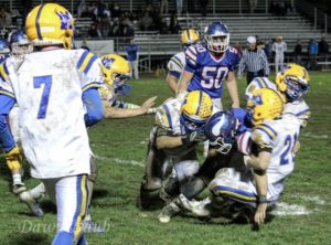 Williams Valley kicker Chett Pesta lined up for a 27 yard field and put the ball through the uprights. That kick started the scoring in this District 11 playoff game. Those 3 points came with just 44 seconds left in the first quarter. The score remained 3-0 until the fourth quarter. To sum up the entire first half there were 4 punts, 2 interceptions, a fumble, turnover on downs, a field goal and a missed field goal. The second half didn’t show much more….until the 9:15 mark in the fourth quarter when Bryce Herb found Bo Raho from 26 yards out to put the Vikings up 10-0. They would eventually get one more score putting the final at 17-0 earning a date with Tri-Valley next week for the 1A District 11 title. “We had opportunities in the first half, we just capitalize. Whether it was turnovers or penalties or whatever it may be” said Colts Head Coach Pat Morgans of the loss.