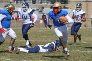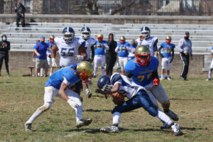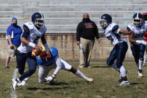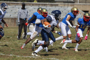 Frankford’s defense added to the scoring. A mishandled snap on a punt attempt by Roxborough was knocked and batted into the endzone while both teams scrummed for it. Frankford’s Quintin Hill pounced on it in the endzone for six. Frankford would go into halftime up 21-0. The last score of the day, once the running clock was in effect, was a 10 yard TD pass from Anthony Torres Jr to Nysir Lipscomb, tumbling across the line for the final touchdown. Abdoulaye Kamagate would tack on three extra points.