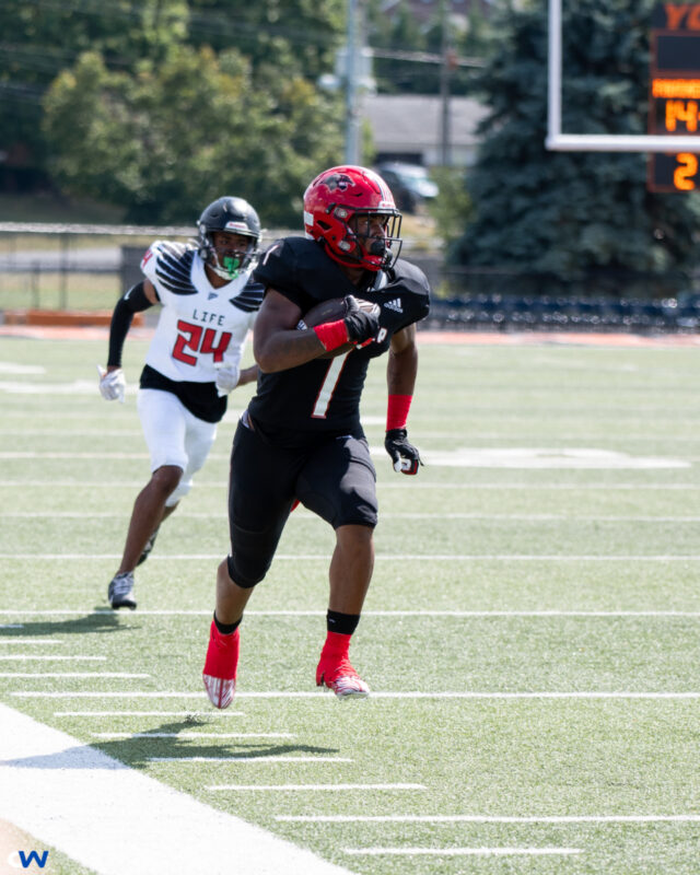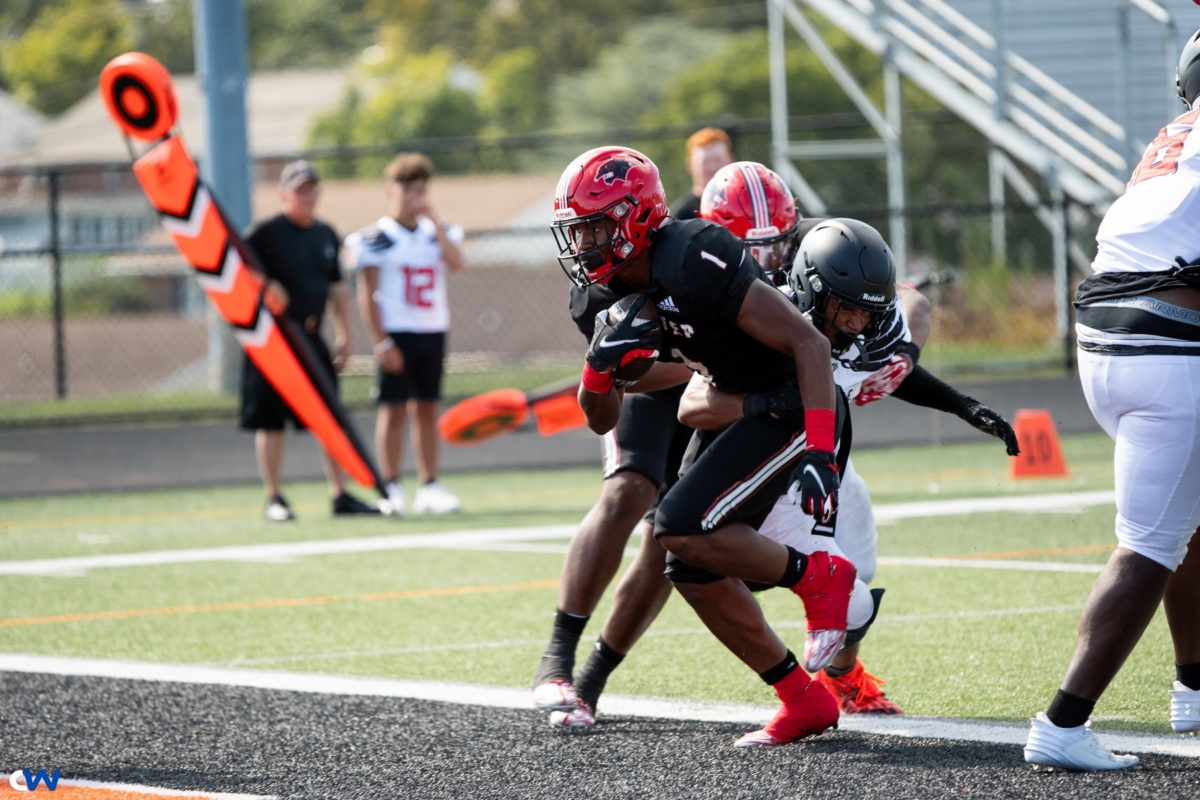 =As the heat from the afternoon son beat down on the field at York Suburban, the Panthers heated up the field a little more. Jabree Coleman scored three times, Mikal Davis ran for a score and threw three touchdown passes. Eisa Nealy caught two of those passes. Back up QB Joe McLeish connected with Kareem Abdul-Haaq and ran for a score. Samire Locks, Syeer Coleman, Kenny Woseley, Charles Beiser, Kahir Hood all scored….you get the picture. The endzone had a direct connected to the Panthers.
