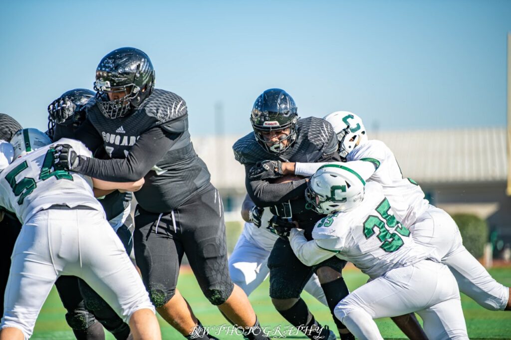 The game for the Cougars was never really in doubt, they came out of the gates fast when Freshman QB Shawn Lee hit a 65 on a yard pass play, then Hopkins finished from the one. He also has kicking duties so his point after gave the Cougars a fast 7-0 lead. Then after the Cougars swarming defense forced a three and out with a punt, they marched 65 yards and again Hopkins scored from the one.