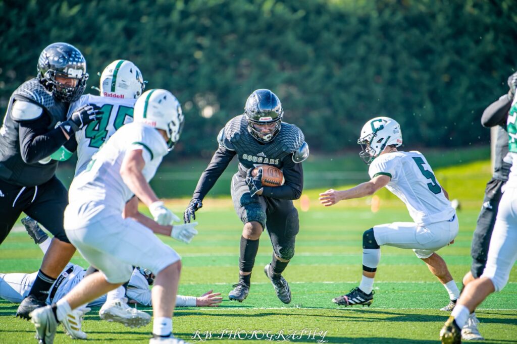 Holding a 21 yard lead late in the second, the Cougars got their second interception of the half. Kyle Williams played the tip drill perfectly and ran an interception back 25 yards to put the Cougars up 28-0 at the half. The Herd made a few adjustments at the break and came out smoking hot in the third quarter, driving 70 yards to get within 21 points, but the field position game bit them again. The Cougars drove the length of the field, but a fumble ended that drive at the Carlisle 10. Terrell Reynolds ended the Herd drive by blocking a punt that went out of the endzone for a safety putting Harrisburg up 30-7.
