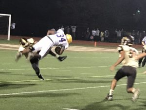 cover photo: Middletown receiver Tymir Jackson flies through the air after being hit