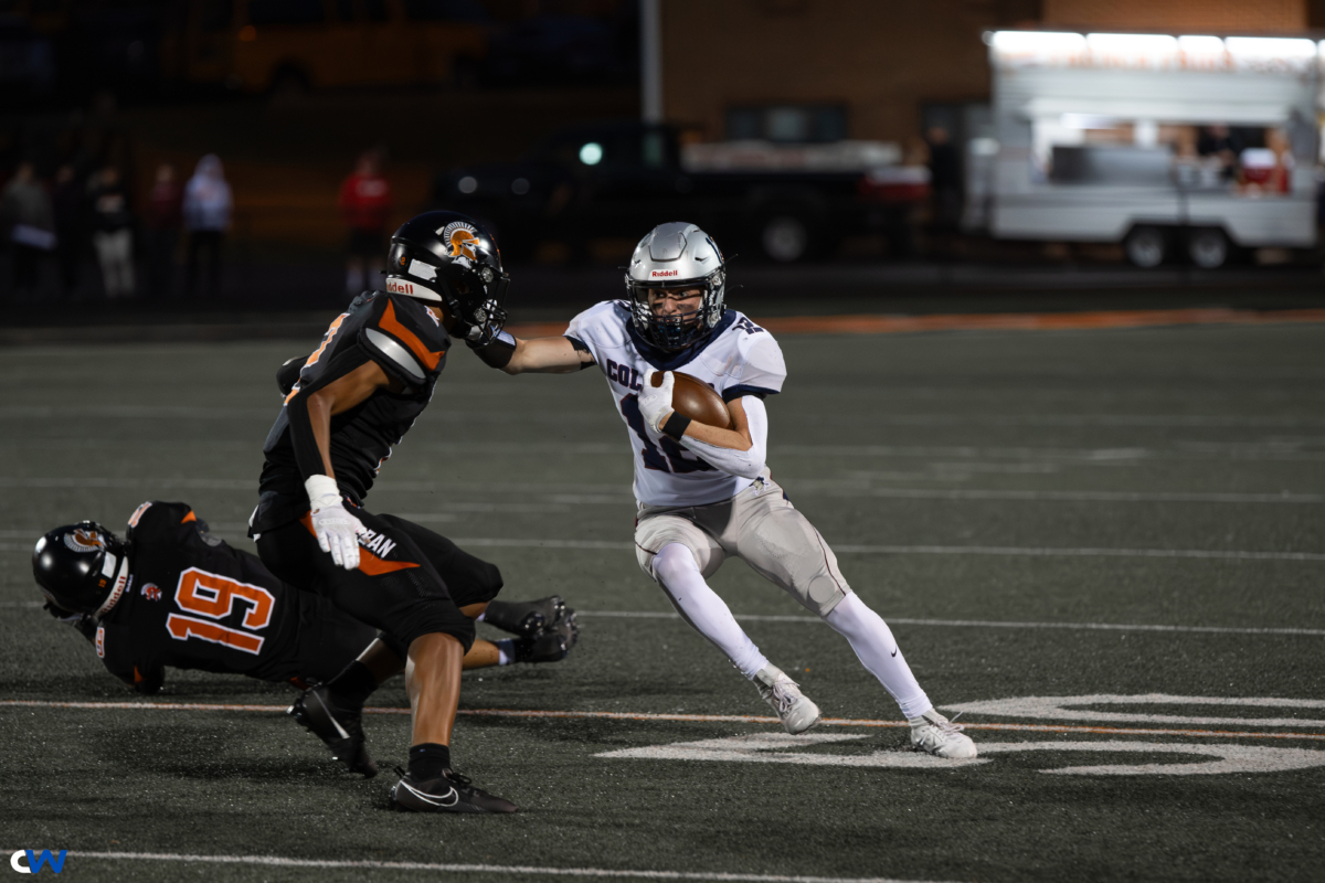 The score was 28-7 going into the fourth quarter, and both teams were able to score before time expired. Clayton Nieves had another touchdown for the Colonials to put them up 35-7. Cj Rissmiler would get his first touchdown with under a minute left in the game, but it would not be enough to hold back New Oxford 35-14.