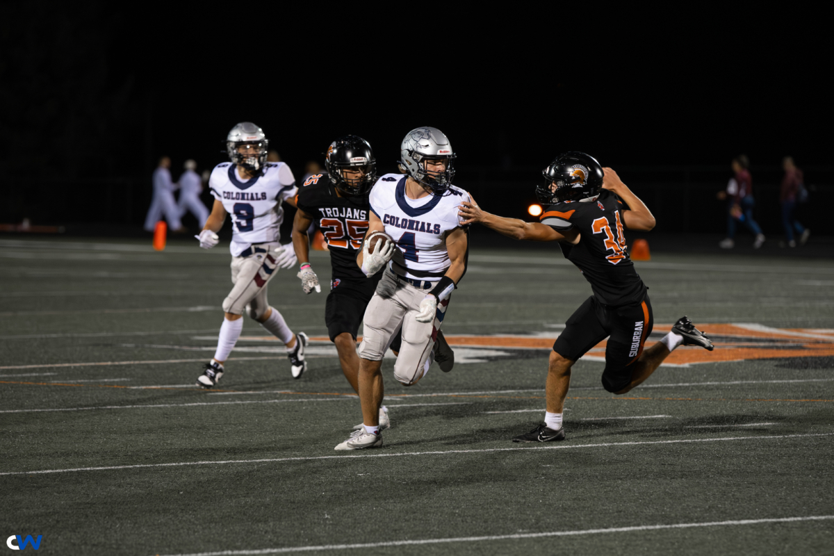 Brennan Holmes would end the game with 3 touchdowns for New Oxford, and Clayton Nieves would also get 2. Cj Rissmiller was only able to get one touchdown, a stark difference from his past 2 games where he scored 7 touchdowns combined. The Colonials are now 5-0 and host Susquehannock, while the Trojans fall to 2-3 and are away at Dover next week.