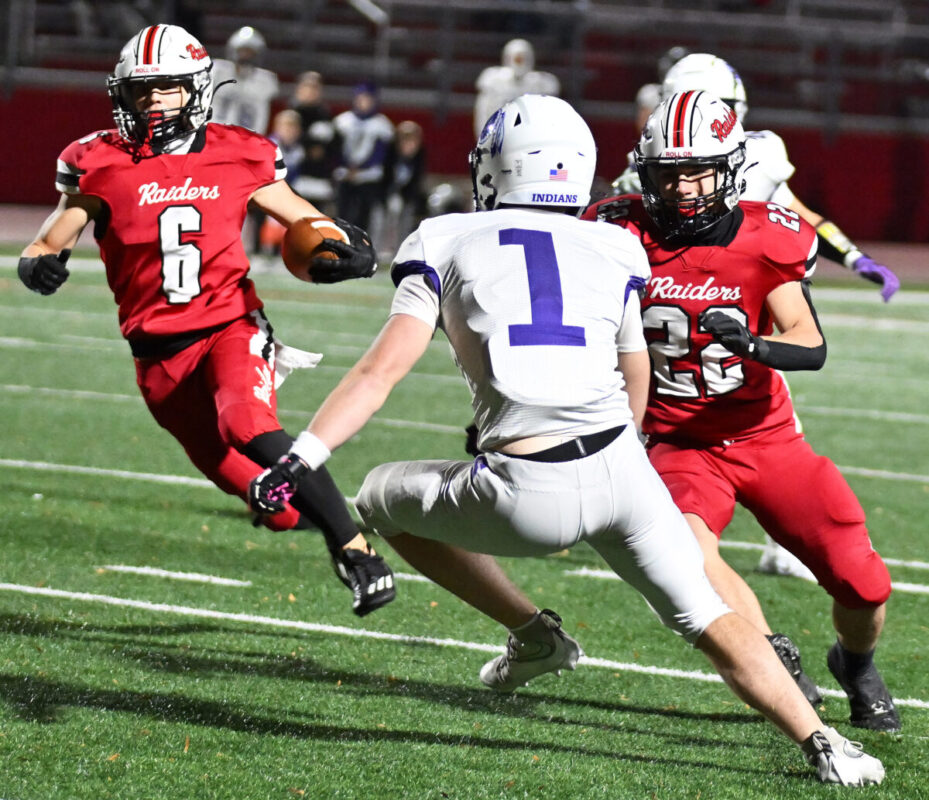 And shut it down they did. Following the Raider touchdown Logan Steele connected with Colin Steinhart on a 14-yard pass with 4:15 remaining in the opening frame to break the tie and put the Indians in front for good. Shamokin struck once more in the first half on a six-yard run by Clinton, giving the Indians a 21-7 lead at the half.