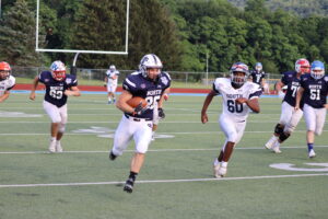 Will Spochart has scored a lot of points for the Mountaineers throughout his career, and last night he ended his high school football career by scoring a lot more points, earning himself the offensive player of the game award for the North. Spochart threw for 2 touchdowns and ran for another to lead team North to a 20-0 win on a beautiful football night at Johnstown High School Stadium. “All glory to God on this one. We really felt like a team that’s been together for a while” said Spochart. But as good as Spochart was, it was a monstrous defensive game led by Tussey Mountains Chad Morningstar and Richland’s Connor Rager, and Spochart pointed that out. “That defense was loaded. All week we knew it was going to be tough for the other team to move the ball and it showed tonight.”