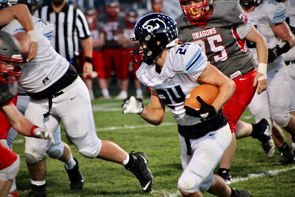 To start the second half the Dragons wasted no time scoring. After a huge kick return to open, Dragon’s Smith broke loose for a 23 yard run down to the six-yard line. The very next play Gregg caps off the drive with his third touchdown of the night. The extra point was no good giving the Dragon’s a 25-0 lead.
