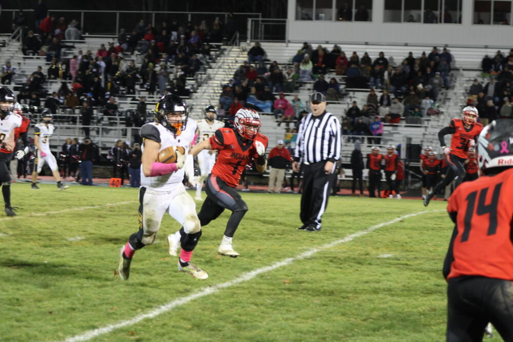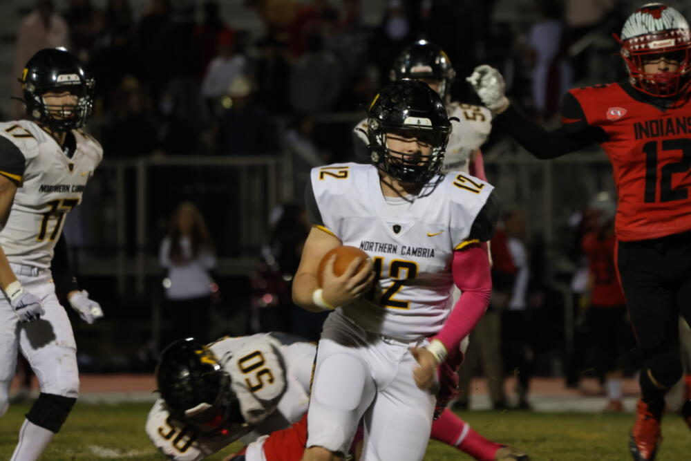In a battle of two playoff bound teams the Northern Cambria Colts outlasted the Conemaugh Township Indians 34-20. Both teams started the season with big winning streaks. The Colts won their first four and the Indians their first five. Both teams have struggled in the second half of the season.