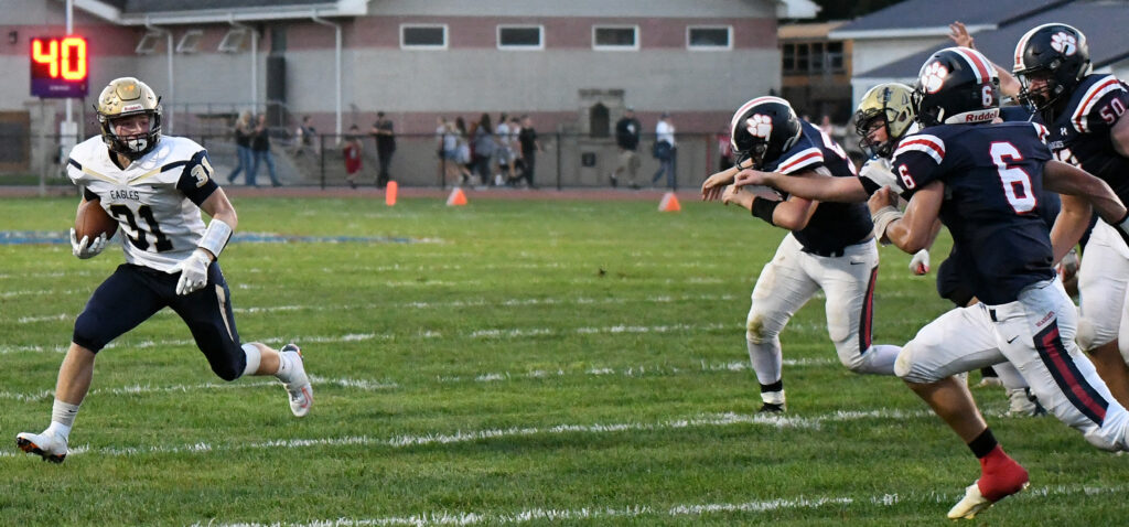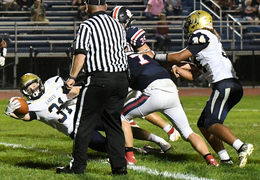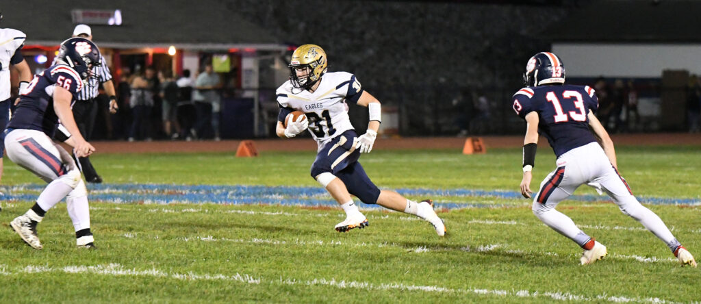A 10-yard run by Chase Thompson and a 1-yard plunge by Chandler Burns in the 2nd quarter pushed the Eagle lead to 35-0 at Halftime.
