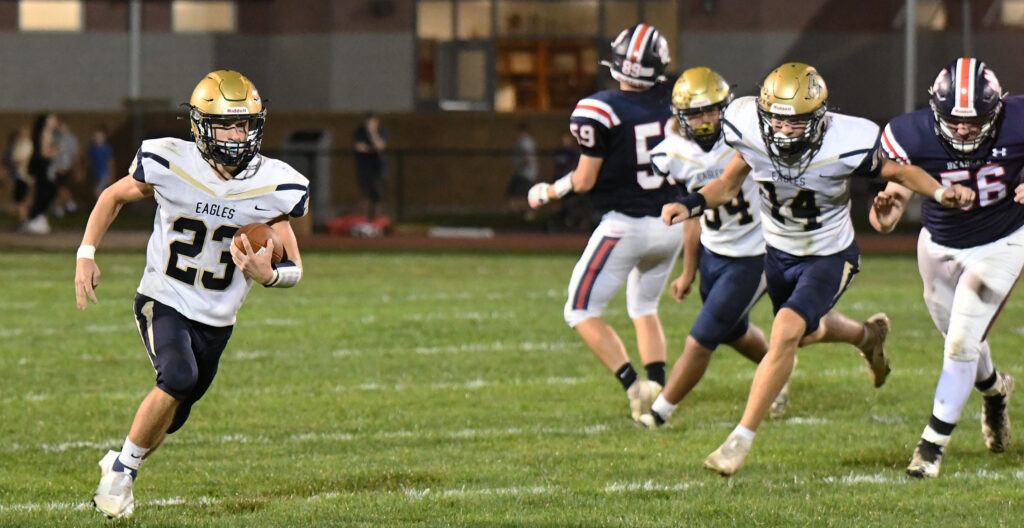 BEA got on the board at the 10:45 mark on a 46 yard pass from Carson Nagle to Gavin Eckley. Nagle then proceeded in connecting with Owen Irvin on strikes of 20 and 62 yards to stoke the Eagles to a 21-0 lead in the first quarter.