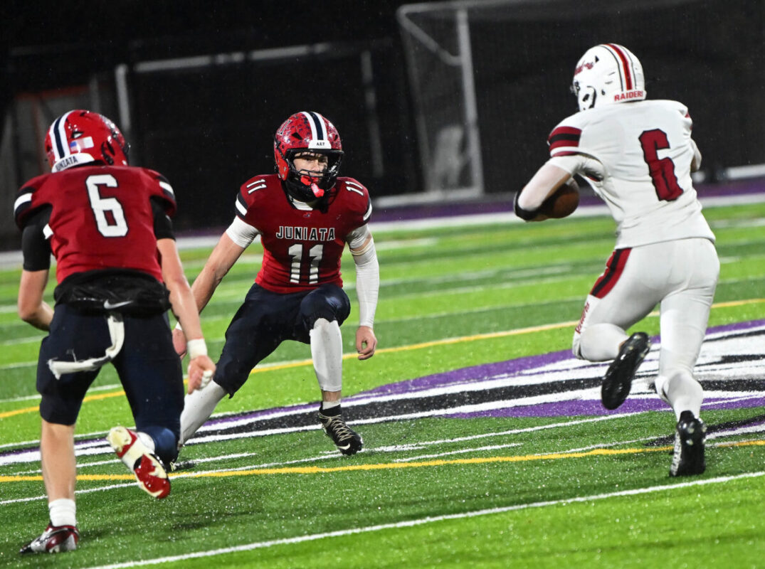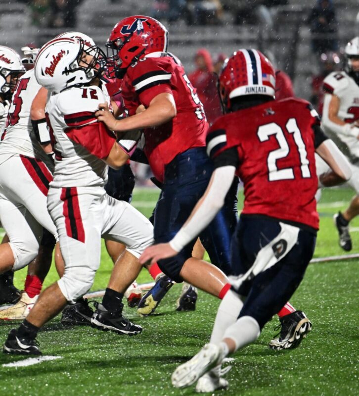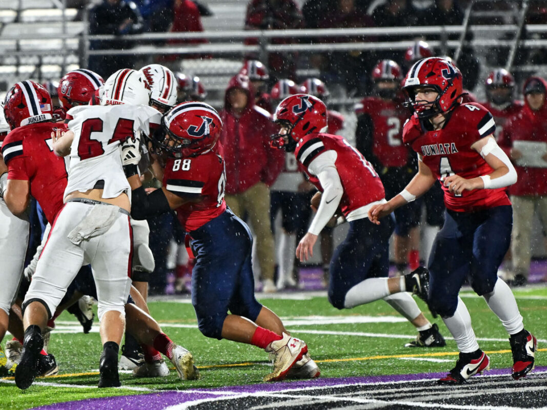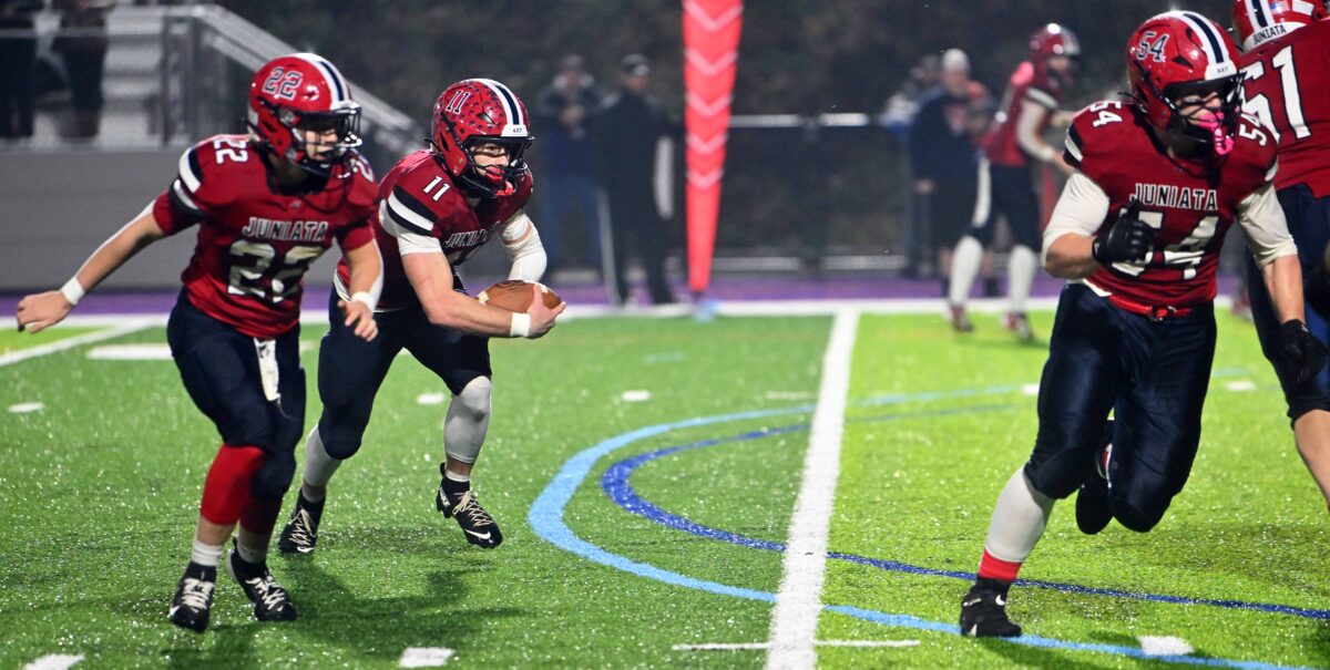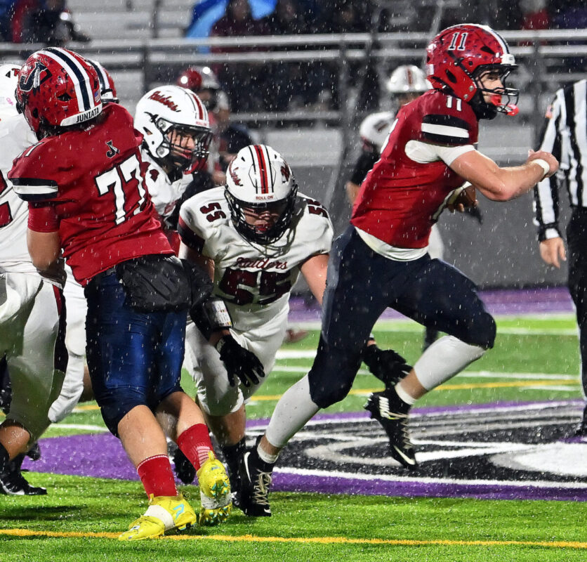 The rain fell hard at times in Bellefonte, but in the end it didn’t dampen the Bellefonte celebration. They won their first district title in 6 years by defeating Juniata 17-6.