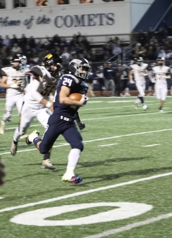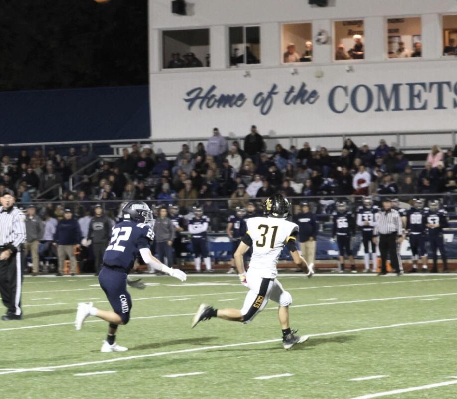 The Colts offense which couldn’t score last week at all, took one play to find the end zone. They ran a man in motion to see if the Comets were in man or zone. They were in a zone. Colts quarterback Owen Bougher than hit a streaking Peyton Myers in stride for a 65 yard touchdown. The game was tied. The Comets defense has three shutouts this year and had only allowed 20 points in five games. The Colts would gain less than a 100 yards the rest of the game as Bougher was under constant pressure and NC was unable to run the ball. PM had six sacks on the night.