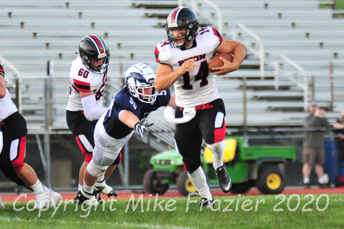 The game’s first score came with 6:40 to go in the first quarter when Billotte took a quarterback sneak one yard into the endzone. The point-after attempt was good making the Bison lead 7-0. The Rams offense came back onto the field and used a couple of Bison penalties to advance the ball. Billotte also plays defensive end and forced a sack stopping the following Rams drive. Both teams struggled to find any offense the rest of the quarter. Near the end of the second quarter, the Bison got the ball off a Ram punt and wasted no time driving the ball down the field using 9 plays and capped off the drive with a seven-yard rush by Billotte. The point after was good making the score 14-0 Clearfield with 5:07 left in the second quarter. The following kickoff, Rams Senior receiver Alex Hammer took the kick 89 yards to the end zone but ended up fumbling the ball out of the back of the endzone giving the Bison the ball back at their 20-yard line. Again Clearfield drove down the field and with seven seconds to go in the half Billotte found Kline for an 11-yard touchdown. The point after was good making the halftime score 21-0 Clearfield.