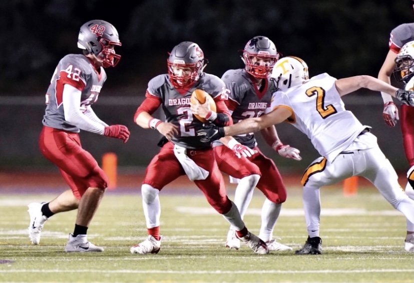 To open the second half the Dragons got two huge sacks on defense forcing a third and 34 attempts which failed and resulted in a punt. On the return, Dragon’s Senior Demetrious Harbaugh had a huge return inside the 30 but was called back due to a block in the back. The third quarter had no scoring and to start the fourth the Dragon’s had the ball and Hoenstine ran up the middle and unfortunately was hurt on the play forcing to be carried off on a stretcher with a lower leg injury. Sophomore quarterback Rylan Daugherty would come in to replace Hoenstine. Tyrone would get on the scoreboard with a little over four minutes left in the game. Before the touchdown, Lucas would connect with Gripp on a 4-5 from the 15-yard line for a gain of 13 to the two-yard line.