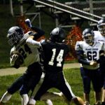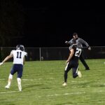 The Comets received the second half kickoff. PM now made it’s one big passing play for the night. Hill hit Dimetri Lieb for 43 yards. Minutes later Hill scored his second touchdown on a two yard run. Hill then hit Reece Hays for the two and it was 29-20 Comets. It took the Wildcats 52 seconds to strike back as Schmidt raced 41 yards for his second touchdown. Schmidt then hit Travis Mock for two. HC trailed 29-28 with a quarter and a half to go. PM would score again in just over three minutes. The big play was a 56 yard run by Baum. Hill scored his third touchdown and Justin Marshall added the point after to make it 36-28 Comets. The game now swung the Comets way as they would recover the next two kickoffs. The Wildcat kick return which had scored and set their offense up several times , couldn’t fall on either kickoff. Lieb would go 36 yards for a touchdown after the first recovery and Marshall’s extra point would make it 43-28 Comets. The Comets then got to the Wildcat one after the second recovery, but a personal foul moved the ball back. Two plays later Penns Manor suffered it’s only turnover and the ball popped up to HC’s Michael Krejocic who raced 87 yards down the left sideline on the last play of the third quarter. Schmidt added the two and we went to the fourth 43-36 PM in the lead.