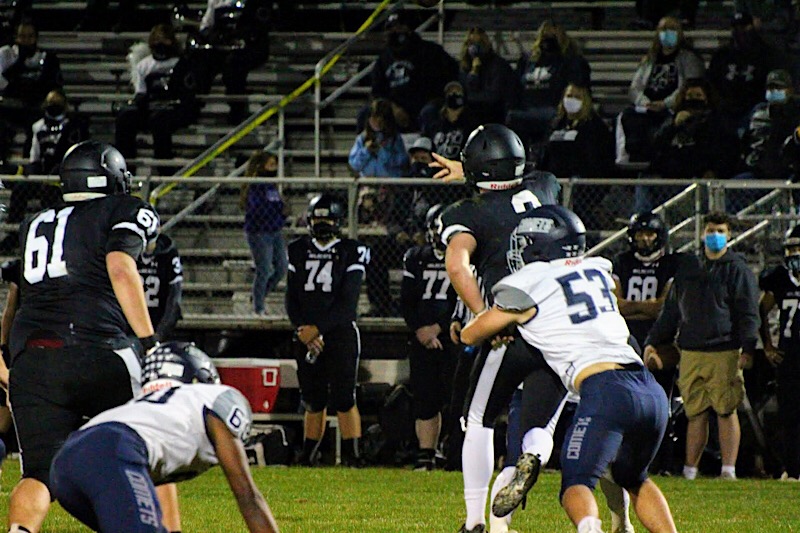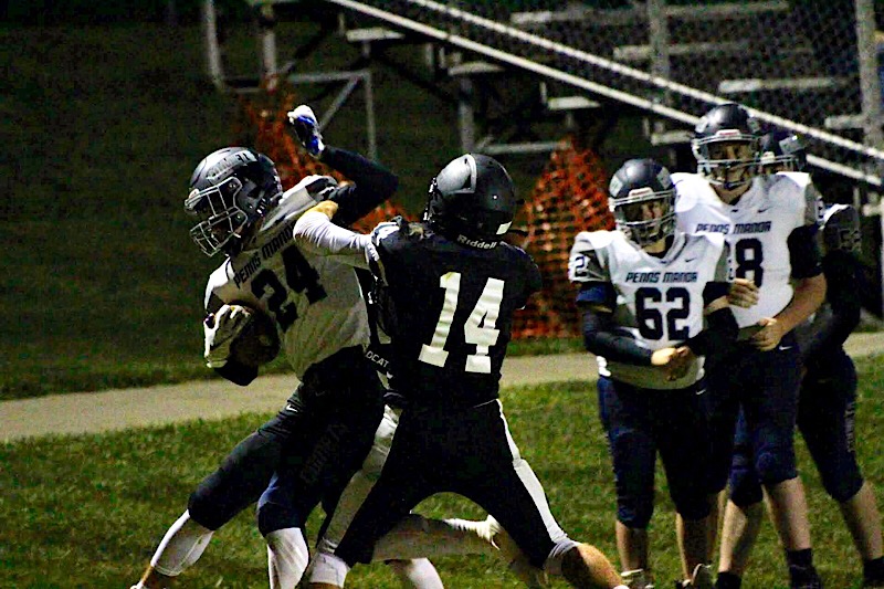 If you like points, this was the game to see. It took the Wildcats twelve seconds to score as Drew Kochman ran straight down the left sideline 92 yards with the opening kickoff. The Comets would respond with an eight play, 89 yard drive that was capped by a Max Hill one yard touchdown run. Homer-Center blocked the kick and lead at the 9:17 mark seven to six. It took the Wildcats a minute and a half to go 55 yards for the second touchdown. A big pass from Ben Schmidt to Michael Krejocic for 46 yards set up a 4 yard touchdown run by Travis Mock. Homer-Center missed the conversion on a bad snap. It was the only big play HC would make all night thru the air. Just over two minutes later the Comets’s Kevin Baum ran 10 yards for a touchdown and the kick tied the game at 13-13. The touchdown was set up by the games first turnover, a muffed punt return inside the Wildcat ten. The next 13 minutes had a punt , a turnover on downs and an interception by both teams. Ben Schmidt scored his second rushing touchdown of the game and added the point after. Homer-Center lead 20-13 with 4:46 to go in the half. The Comets would take the lead with 21 seconds to go in the half. Conner Keith capped a drive with a short two yard touchdown run. Dimetri Lieb ran for the two point conversion. The teams went to the locker rooms with PM up 21-20.