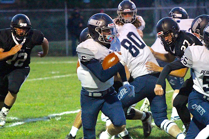 The best thing about high school football is how the kids response to different situations. HC could have quit after giving up the two kickoff recoveries and three touchdowns in the quarter. They didn’t and now it was the Comets who had to overcome a fired up Wildcat team. The Comets took the kickoff and drove right down the field. They drove to the HC 25 and on 4th and 1, the Wildcat defense responded by stopping PM inches short. Ben Schmidt immediately took over running like someone possessed. Schmidt would score his third touchdown with 5:23 to go in the game. It as 43-42 Comets. HC coach Greg Page then went for the win but Schmidt was stopped inches short and the Comets held a one point lead. HC only needed to stop the Comets one more time and they had all three timeouts. The last half of the fourth quarter was awesome to watch if you are a Comet fan as they drove the ball down the field again. With about two minutes to go in the game the Comets had another 4th and 1, this time they got the first down. They were then able to run out the clock. Penns Manor stable of backs and their undersized line are a thing of beauty. The linemen are very good and pulling and getting out on their defenders and their backs are excellent at deciding when to cut it up field. The Comets rushed for 465 yards and added 50 thru the air. It was a well deserved victory. The Comets will need to clean up some of their penalties. They had some questionable calls go against them, but were lucky not to get called for too many men on the field several times. This is the third time I have seen them this year and since second half of last week their offense has really picked it up. The Wildcats will need to get their defense figured out. It wasn’t so much the yardage allowed, it was the time of possession. Their high flying offense never seemed to be on the field. Special teams which gave them a 7-0 lead collapsed with the three turnovers and a bad snap on the one conversion. Both teams should have a good chance to make deep runs in the district six playoffs. Good Luck to both teams!