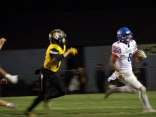 The fireworks were just beginning. The Jayhawks put another touchdown on the board after a nifty 11 yard run by Brown which again put the Jayhawks back in the lead at 24-17. However, the ensuing kickoff, one of the Bearcats up men on the kickoff team fielded the ball and apparently fumbled and recovered by the Jayhawks. After a meeting with the officials, it was determined an inadvertent whistle occurred and they replayed the kick. That seemed to have sparked the Jayhawks defense, as they sacked the Bearcat quarterback junior Ty Watson for a big loss. Then the Jayhawks blocked the punt. Senior Noah Sunder scooped up the block and scampered into the endzone giving the Jayhawks a lead that they would not relinquish, 31-17. The Jayhawks defense again held and kept the Bearcats off of the scoreboard. The Jayhawks looked to put the final touches on an impressive all around performance when senior Nicholas Mendoza went around the end for 40 yards to push the Jayhawks lead to 38-17, punctuating a stretch of 21 unanswered points. However, the sliver of hope for the Bearcats remained intact when Hays took a pass in the flat and danced through the Jayhawks defense for 60 yards, to cut the lead to 38-24. Bentworth then recovered the onside kick, but were not able to get anything going. Brown put an exclamation point on the win picking off a Watson pass. The Jayhawks were able to assume the victory formation and move onto the next round after a well played and hard hitting contest.