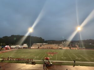 Moon’s run game was the story of the game being able to use several different runners in the game. Moon got the ball to start the game and they started at their own 17 yard line. Eventually they got into Bethel Park territory after a big run by Joe Cotton. But after that the drive stalled and Moon turned the ball over on downs.