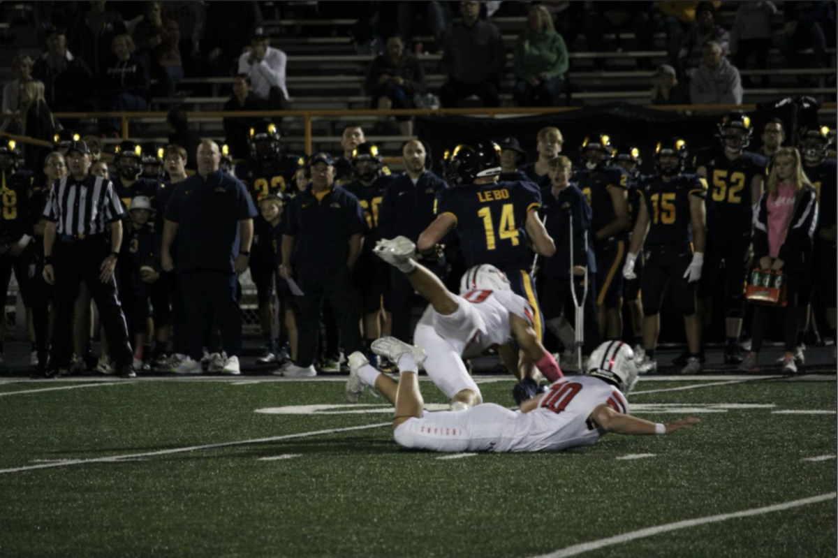 On the very next offensive play, Mount Lebanon threw an interception returned touchdown to Peter Township’s Reston Leahman. This made the score 35-0 after a successful two point conversion with 1:03 left in the first half.
