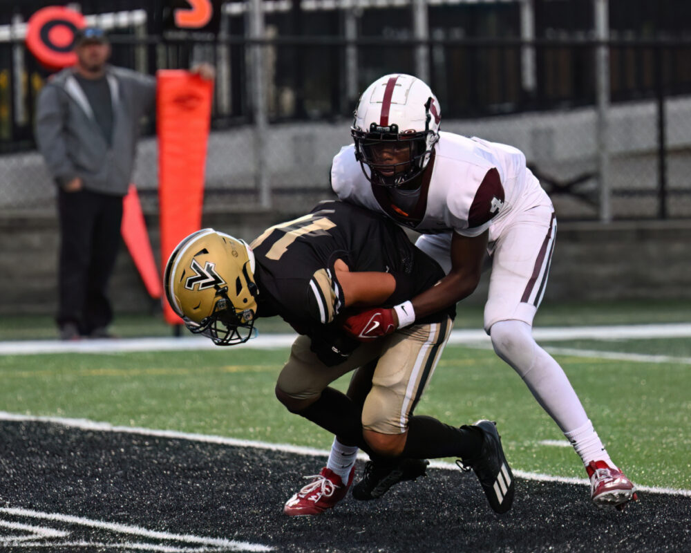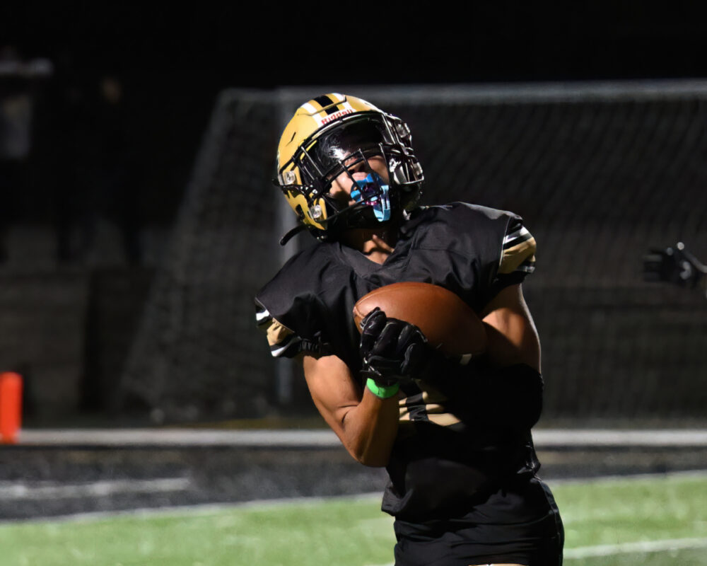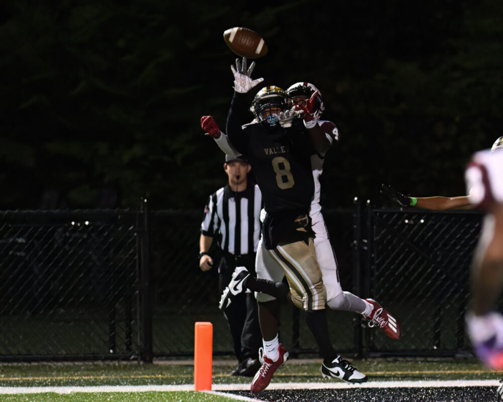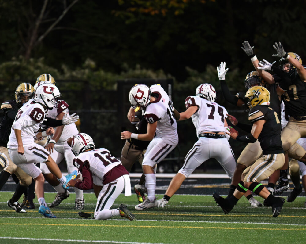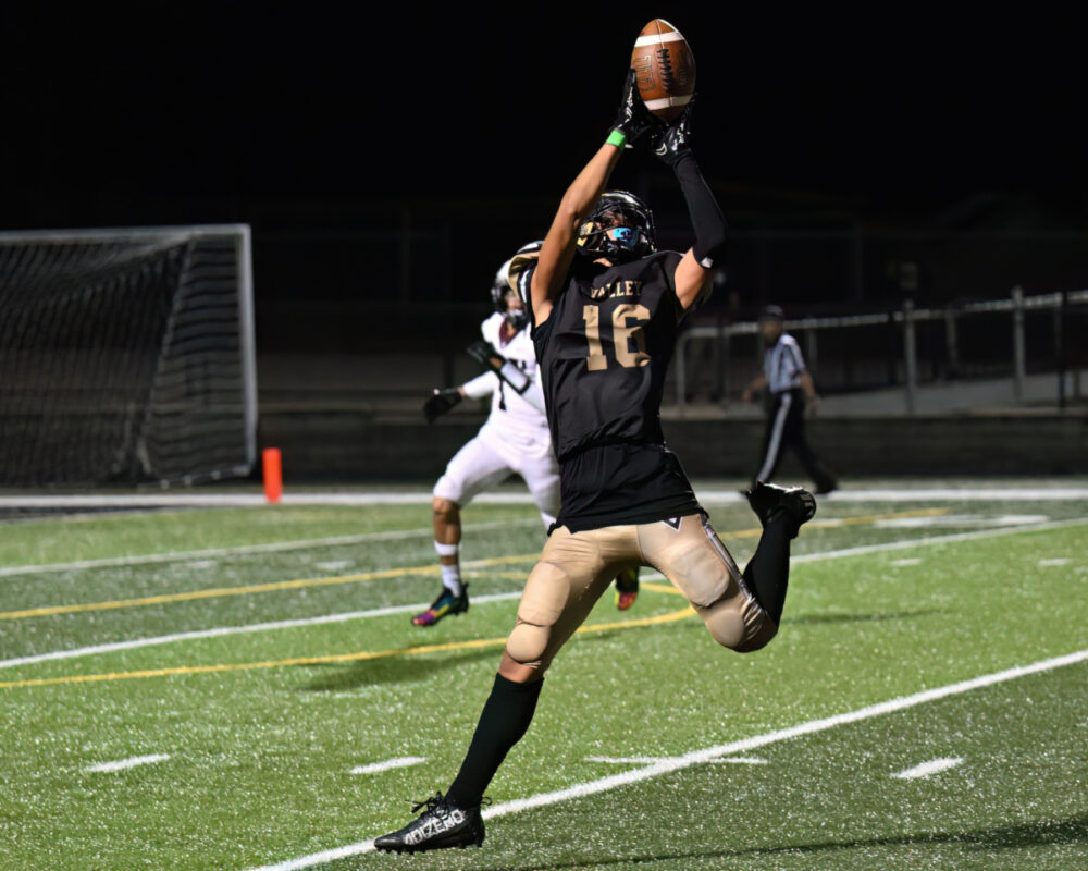 Valley Vikings defense played a big role in their win by getting scores from turnovers and stopping Uniontown from scoring at crucial moments by getting interceptions. Not in gallery was another turnover with Conner Sakala recovering ball in end zone for a Valley TD which was last score of game – Uniontown 6 Valley 38.