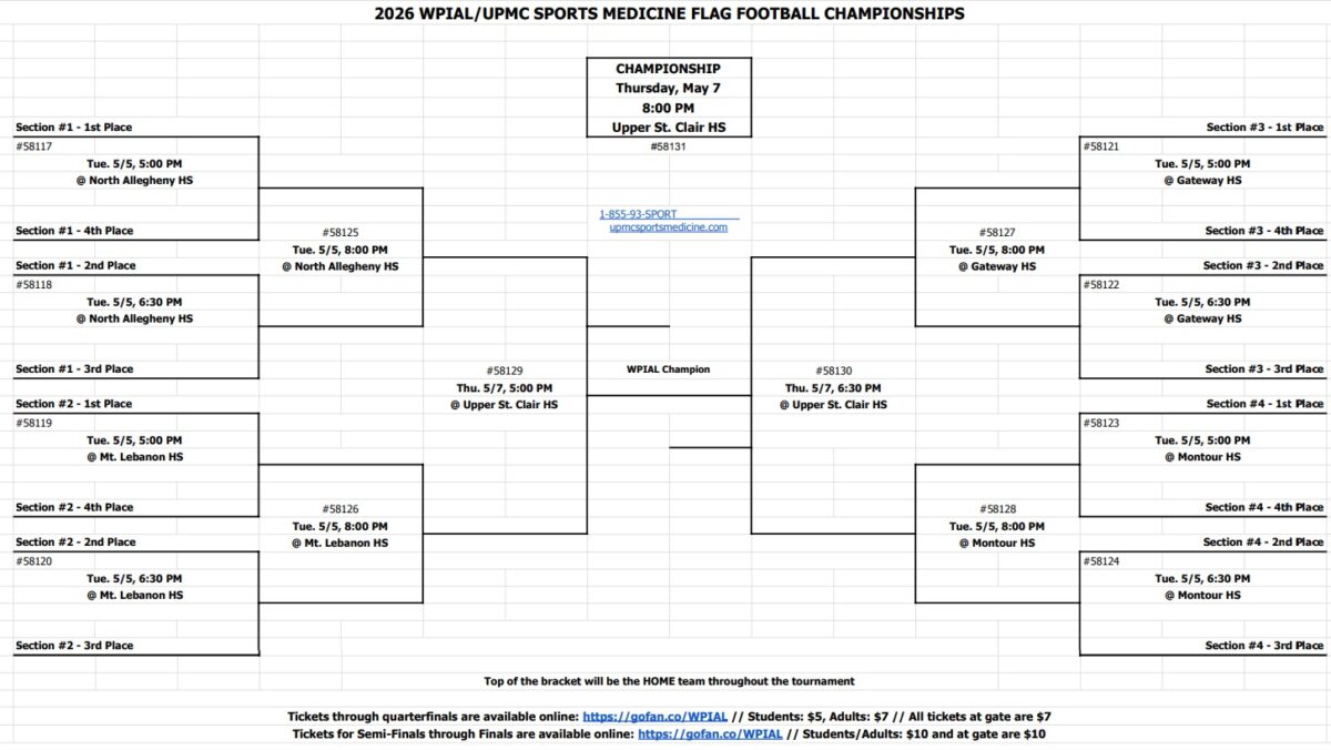 The winning team from each section will advance to the WPIAL Semi-Finals/Championship game, which will be held on Thursday May 7, 2026.