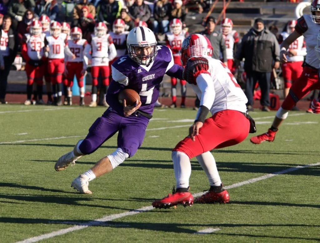 They say good things come to those who wait. Saturday afternoon in DuBois, the Coudersport Falcons waited till the fourth quarter before putting the pedal to the metal in claiming their second straight D-9 Class A title. The Falcons trailed the Redbank Valley Bulldogs 7-6 heading into the final stanza and then they erupted for 36 points in claiming the 42-13 triumph.