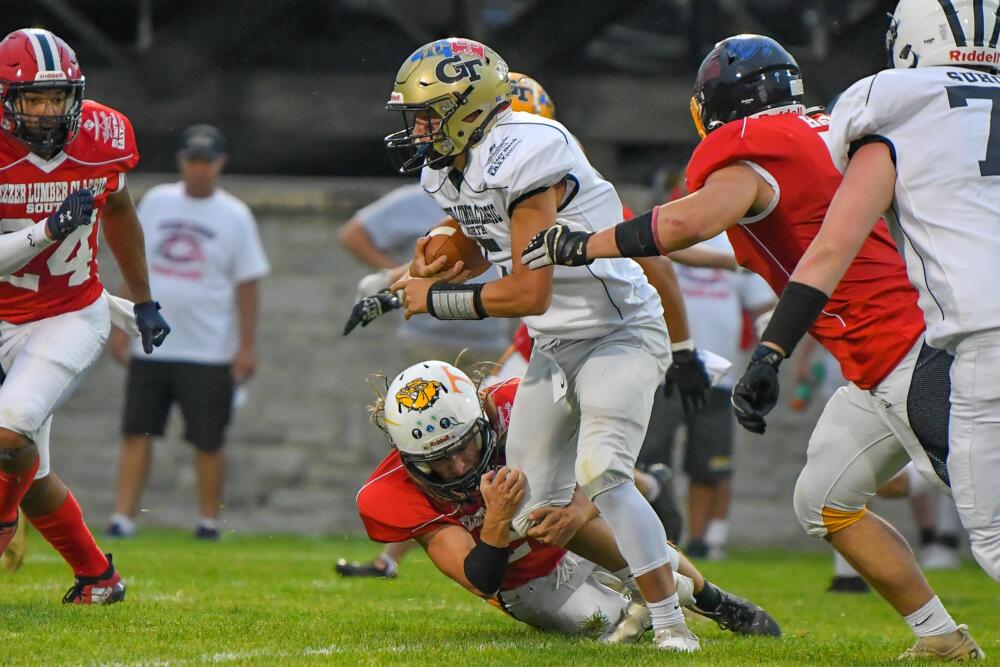 Southern Huntingdon’s Nate Myers threw for 208 yards and four touchdowns to lead the South to victory – Bishop Guilfoyle’s Dominic Yanoshak caught four passes for 98 yards and two scores to lead the South in receiving.