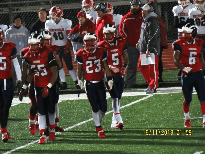 The Warriors bad snap from the Center to the quarterback would show its ugly face again and cause an 8-yard loss, with just 0:38 seconds left in the half. Thirteen seconds later 21-yard catch and run by Miicah Coleman to the ball to the Generals 7-yard line, but the clock ran out and this stayed a 7-6 Sheridan lead.