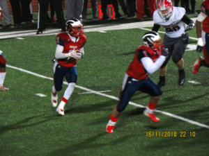But on the ensuing drive a sack by Coleman and the an interception by Roshaun Harper ended any dream of a comeback for Sheridan and set off a nice celebration by the Warriors and the good fans that was left in the stands.