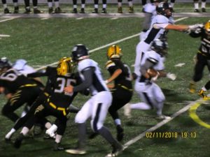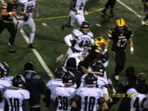 This one started out with a sack being recorded by Paint Valley, just seventeen seconds into the game, when Brayden Ison exploded into the Bobcats backfield to bring down Kyle Casey for a six yard loss. Casey goes 6-3 185 pounds, while Ison is 5-11 180 pounds. The bigger quarterback stood no chance of escaping, as he went down like Liston did against Ali, way back when.