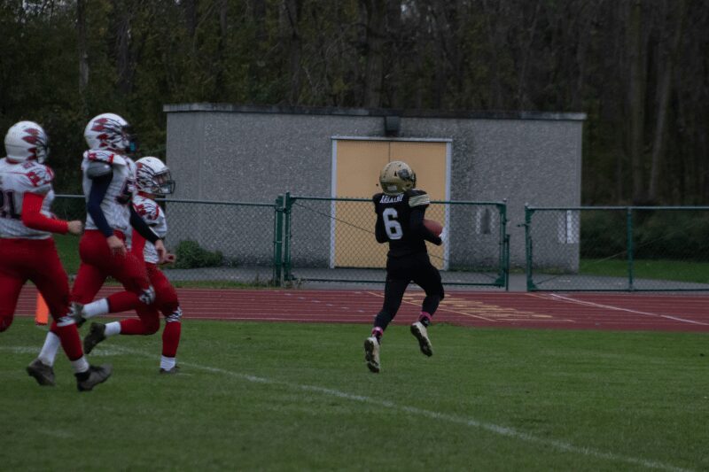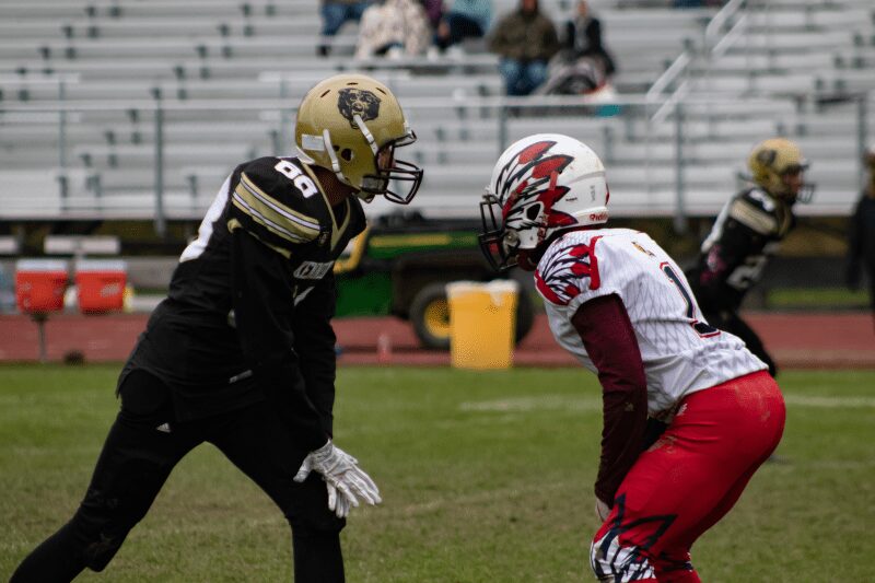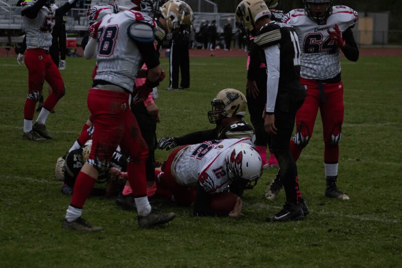 The game was set for 4pm, however once the teams arrived and were set, kickoff took place at 3:45pm. Before 30 fans. Though more showed up closer to the original kickoff and throughout the game. Maybe 200-300 there at most. However, late in the first quarter, a long injury timeout delayed the game nearly a half hour. Without an ambulance on site, we had to wait for one to arrive, and then safely remove him on a stretcher. The injury didn’t appear life-threatening. The coaches, trainers, and other officials all seemed rather relaxed while they handled it. But, it was an injury that didn’t want to move a big lineman and try to limp him anywhere.