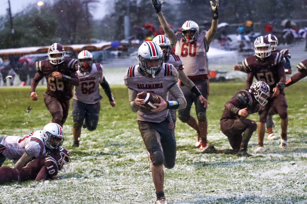 Salamanca pulls off a snow-filled stunner (@SalamancaPress) @SalWarriorsFTBL @PCS_Panthers