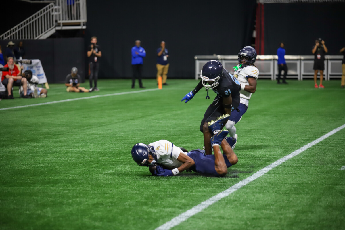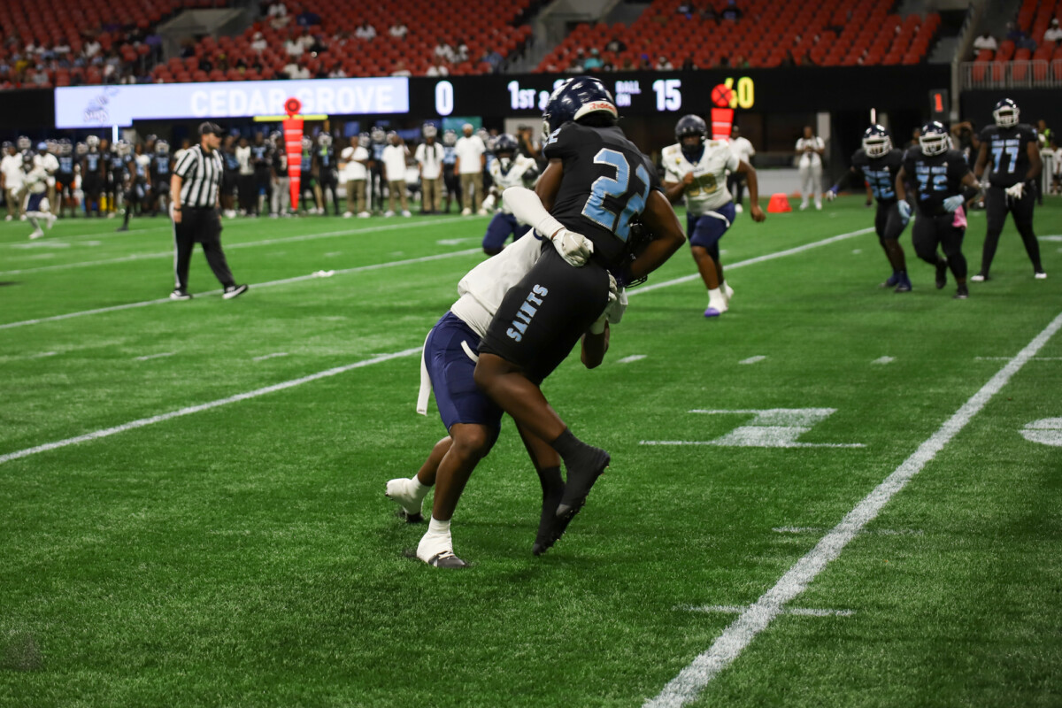 Saturday was the four-game extravaganza at Mercedes-Benz Stadium. Starting at 10am, the Brookwood Broncos take on the Walton Raiders. At 1pm the Houston County Bears took on the Alpharetta Raiders. At 4pm was another local matchup as North Gwinnett Bulldogs took on the McEachern Indians. And to close out the weekend, the Cedar Grove Saints were paired up against the Douglas County Tigers.