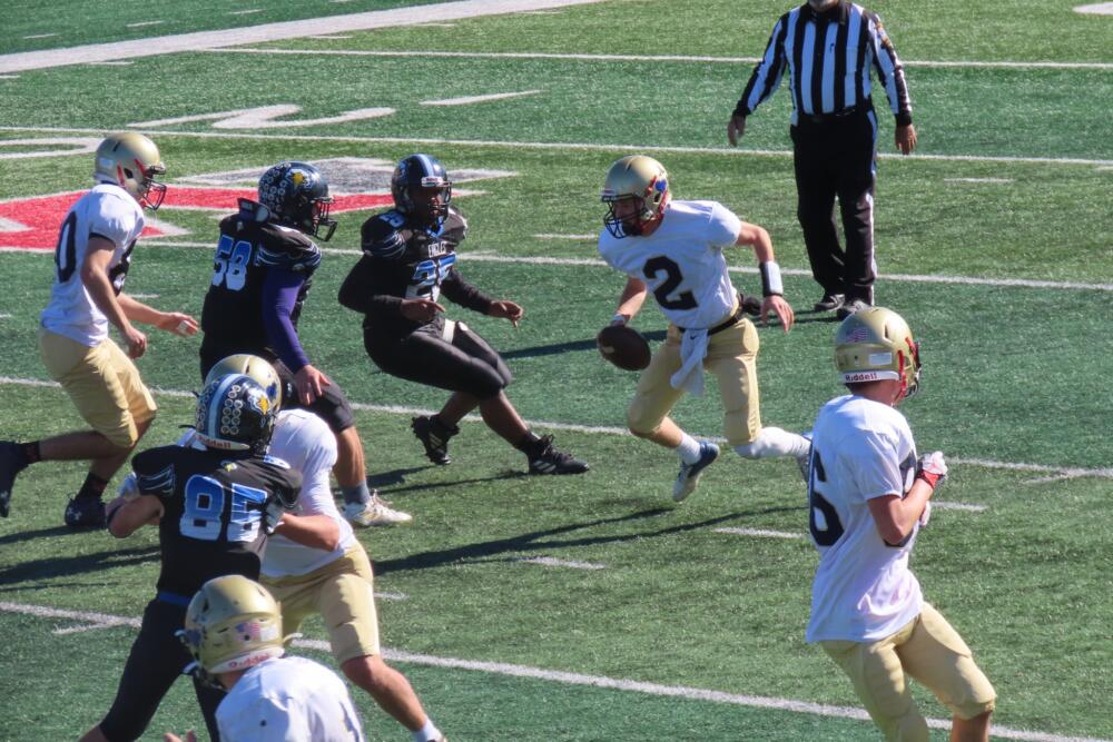 The Eagles would get two nice runs that total 25-yards by Hudson Mortimer but the Crusaders defense bared down and put a quick in to the drive soon after. After getting back on the field Davis had to scramble for his life before firing the ball to Dean Foster for a big gain of 34-yards, with 1:25 left on the clock. Fullback Parker Anderson would have his bell rung when the Eagles Dakota Reardon crushed him holding the bruiser no no gain on the play. Davis would end the hard-hitting quarter with two completions, the first to Chris Durbin and the second to Austin Albus setting up a first and goal from the ten to start the second quarter.