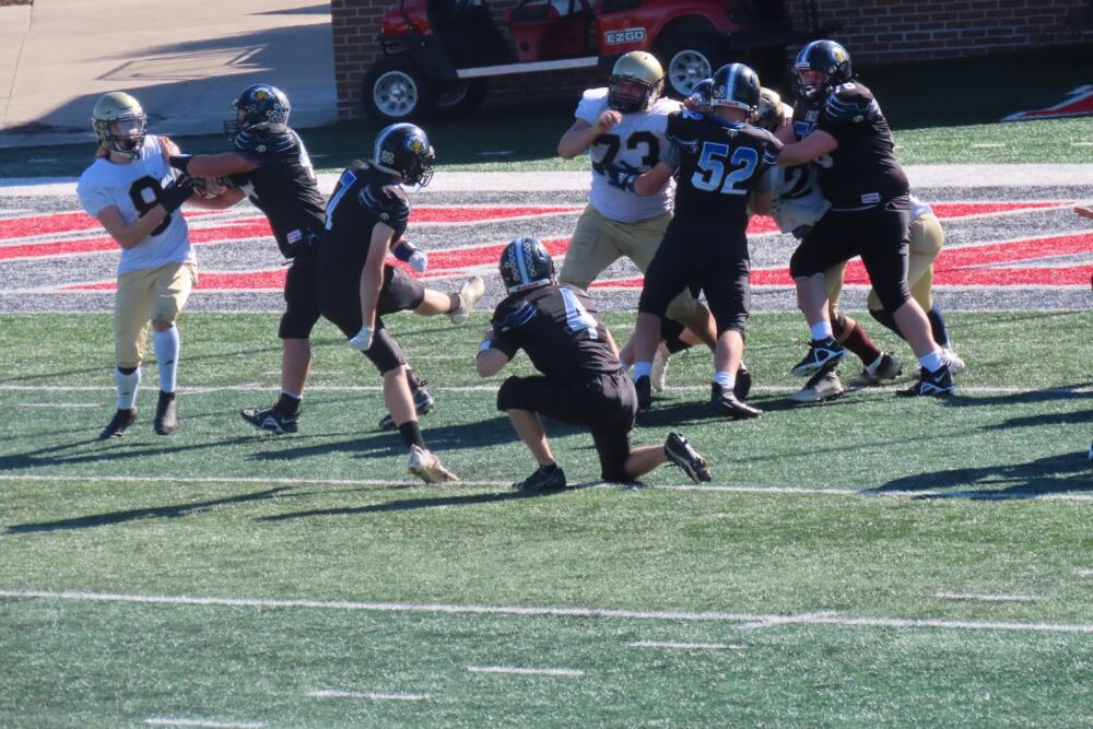 The Eagles defense would get an excellent play from Hudson Mortimer when he got to Austin Albus for a loss of seven at the 10:07 mark of the first quarter. Chase Davis would throw a nice little pass to Chris Durbin who after making the grab he powered his way for a gain of thirty taking the ball all the way to the Eagles ten. The drive came to a screeching stop after a fumble that the Eagles defense came up with.