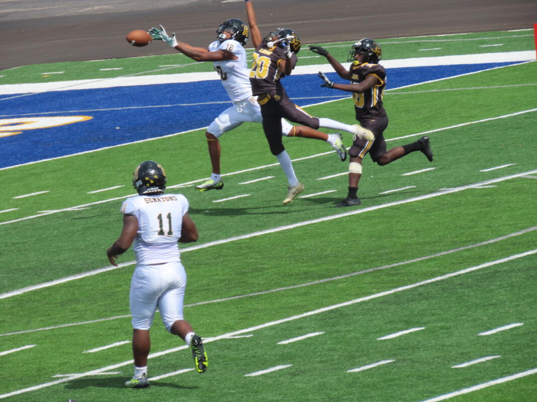 On the ensuing kickoff, Rmonte Chambers of the Senators pounced on the football to bring his squad high octane offense right back out on the field. Facing a fourth and seven Head Coach Tyler Wiliams and staff elected to go for it and this paid off when Ison found Richardson for the first down. Nine seconds later Ison connected with Bostic for a gain of seventeen. At the 4:11 mark of the quarter Ison had his pass tipped right back to him and he would pick up eight yards after catching his own pass. The drive failed to deliver any points as the Lions continue to give their best effort even with the game well out of hand.