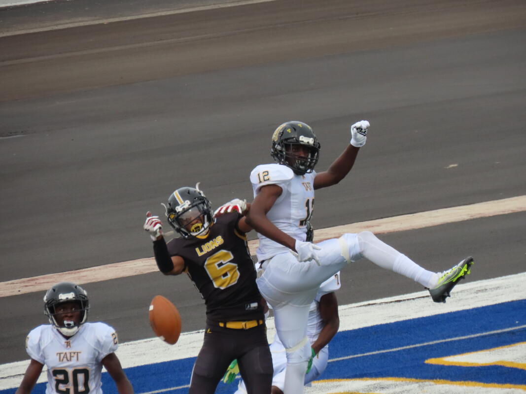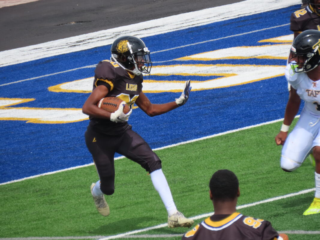 From there unfortunately things would go downhill at a rapid rate for the Lions with a bad snap on a punt leading to a safety putting Taft up 2-0, with 4:33 left in the fast-moving opening quarter. Antaeyo Stuckey would use some sweet moves and field vision to pick up twenty-three yards but he would give five off that back after he was called for an offensive face masking. Holly would gallop to a gain of thirty-eight moving the ball to the Lions eight-tard-line, with 2:57 left on the clock. Holly would finish the drive off on a four-yard touchdown run with Max Brown hitting the point after kick to make this a 9-0 game.
