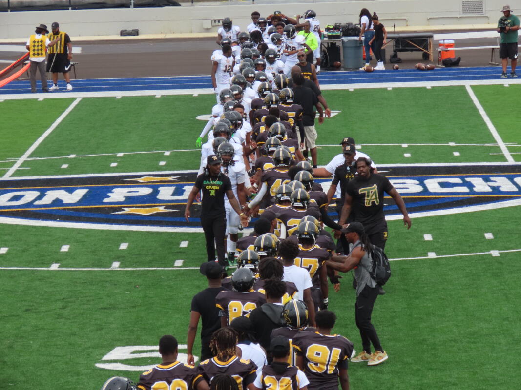 My Saturday afternoon game took me to Welcome Stadium in Dayton, Ohio a place I had not been to since 2017. With new turf, the place looks so much better than it did back then, and with the upgrade, Dayton should really make a bid to host the state finals. There were only a couple of hundred people in the stands to take this game in but the few who were there got to see Cincinnati Taft put on a movie script-like effort as they would not only win the game by fifty-one points they would hold the home team to an unofficial thirty-two yards on thirty-nine plays.