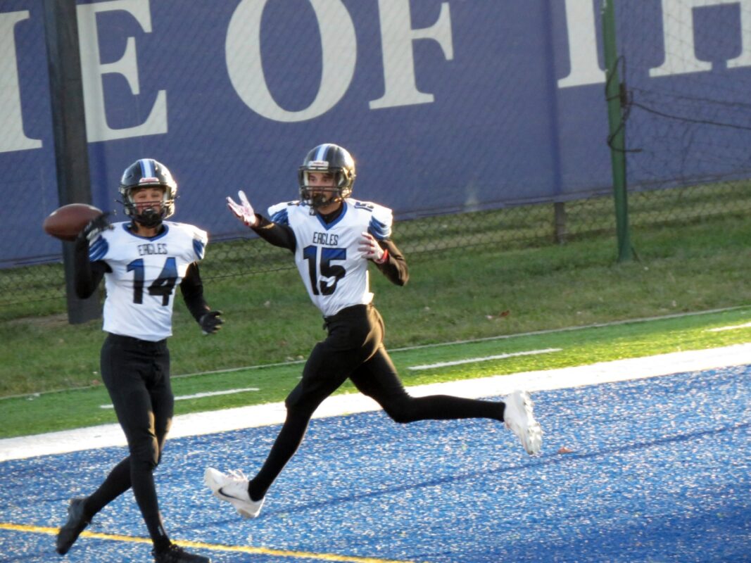 The fourth quarter would see Bauer find Andrews for 10-yards. A fumble recovery by Daniel Hoke came when Ezekiel Bowie coughed the ball up. Vetter was sacked by Fries for a loss of eleven with 10:30 left in the contest. The final two plays that stood out in the final frame were a fumble recovery by Eli Luken for Landmark and then an interception by John Walters on a pass thrown by the Eagles backup quarterback AJ Skoog.