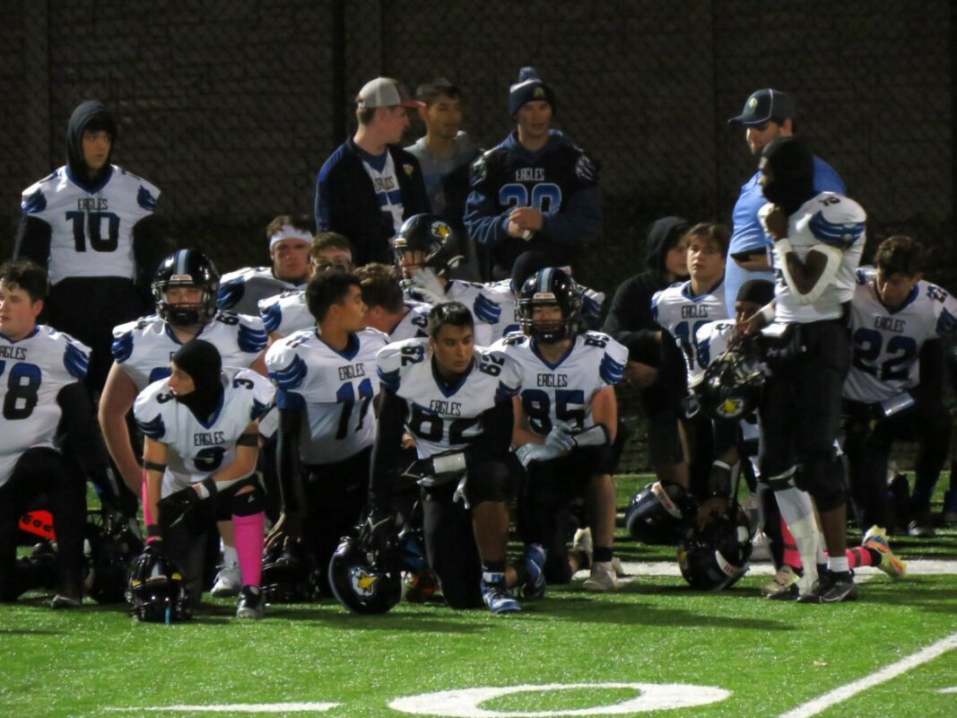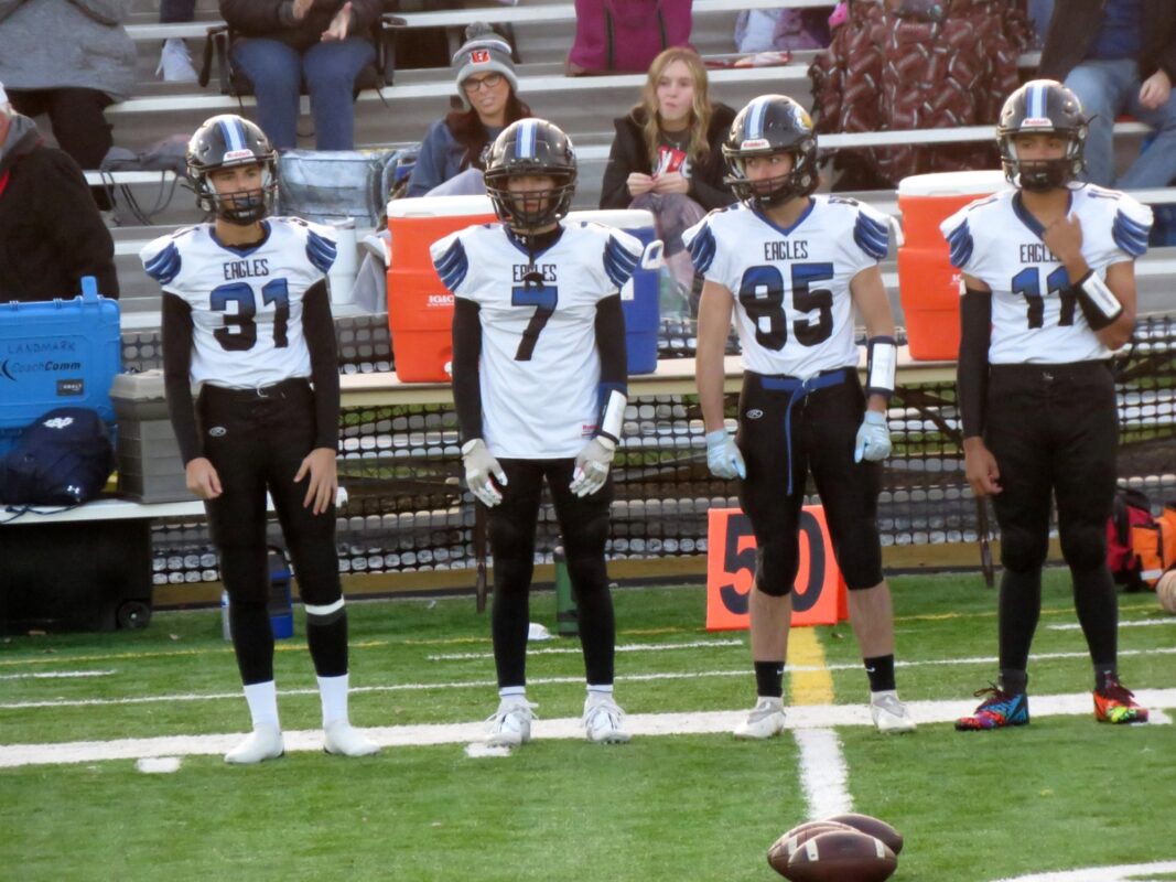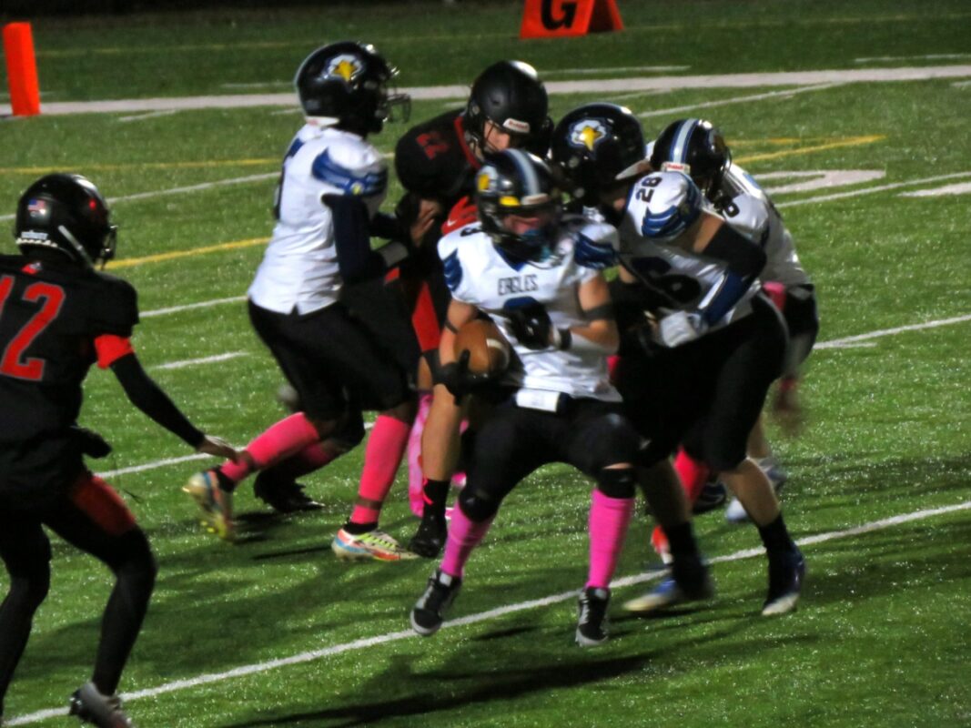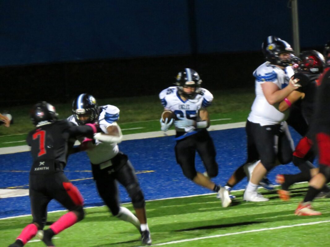 The Eagles would have to move their D-1 lineman prospect Luke Williams all over the field including linebacker and fullback where he still had 10 tackles and two sacks would pull off a fake punt on fourth and two that worked perfectly when Wright galloped to a 19-yard gain. The halve ended before the Eagles could do any more.